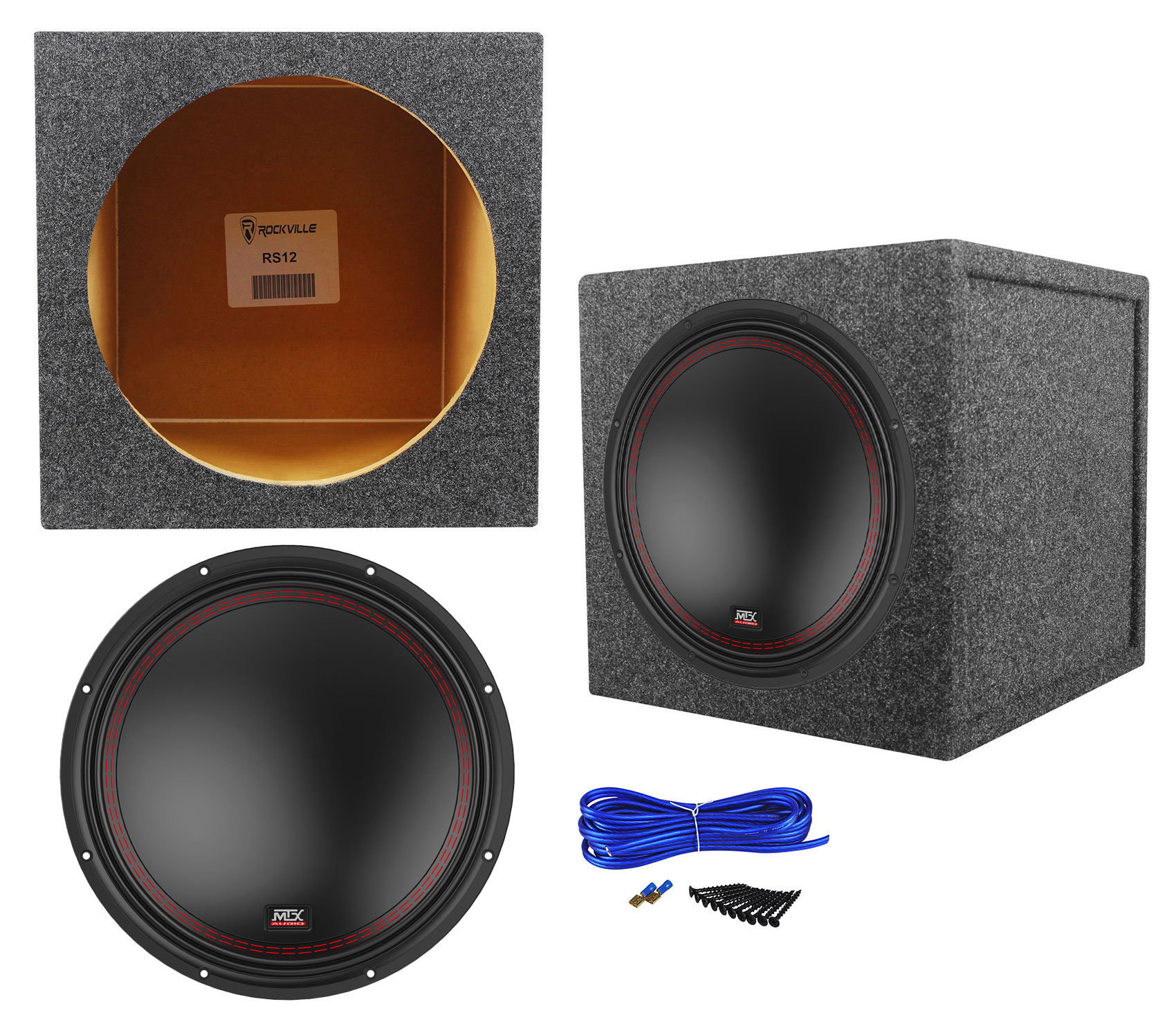 Package: MTX 5512-44 12" 800 Watt Peak/400 Watt RMS 4-Ohm Car Subwoofer + Rockville RS12 Single 12” 1.0 cu.ft Sealed Subwoofer Enclosure With Grade A 3/4" MDF Wood, Made in America Using Only the Highest Quality Materials for the Best Performance and Sound From Your Subs + COMPLETE SINGLE ENCLOSURE INSTALLATION KIT WITH 14 AWG SPEAKER WIRE + DRYWOOD SCREWS + SPADE TERMINALS