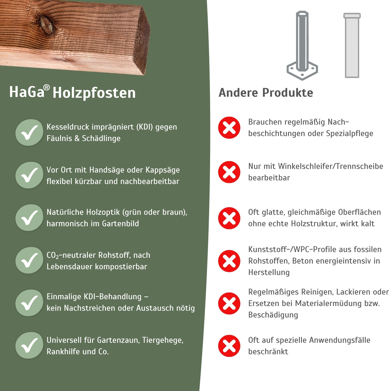 - Massives Kiefernholz: Umweltfreundliche, kesseldruckimprägnierte Holzpfosten für erhöhte Haltbarkeit.