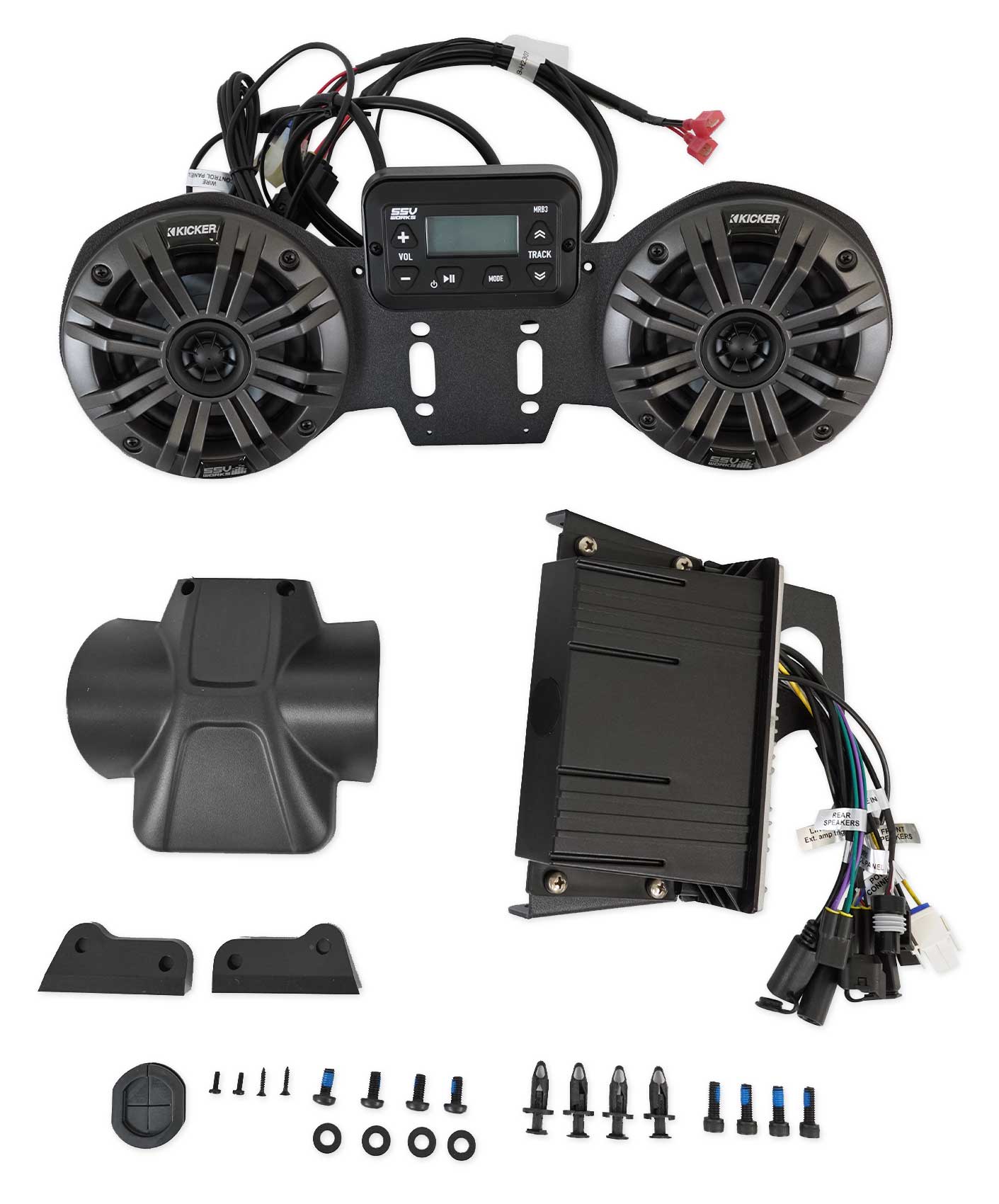 - Injection molded kit for MRB3 controller with integrated 4” Kicker speakers