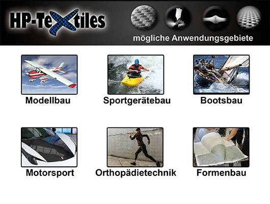 Mögliche Anwendungsgebiete: Hochfeste und dünne Laminate, Sandwichbau, Modellbau, Flugzeugbau, Sportgerätebau, ...