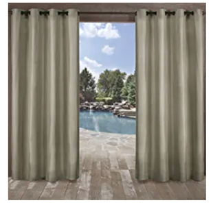 The Biscayne indoor/outdoor dyed two tone yarn grommet top curtain panels bring extra fashion and style to any outdoor living space. These polyester panels, with a heavyweight and textured feel, drape beautifully. The panels offer a UV Ray protectant and are mildew resistant. These beautiful panels are perfect for blocking the sun, creating more privacy, or setting the mood as the ultimate finishing touch to any pergola, cabana, covered patio, gazebo, deck, beach home, or any outdoor extension of your home. The Biscayne drapery is constructed with gorgeous, matte silver, rust proof grommets and can be hung on your favorite curtain rod up to 1 5/8" diameter, adding yet another touch to the richness and luxury of your decor. These window curtain panels will drape beautifully from any window that could use that perfect, finishing touch. Our curtain panels are perfect for any living room, bedroom, family room, dining room, bathroom and office. Our stylish designs will suit any window space.