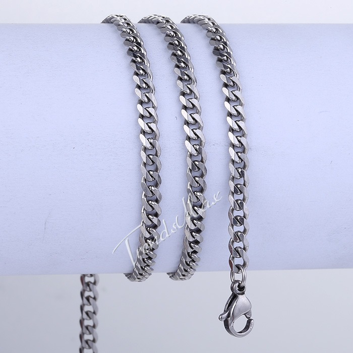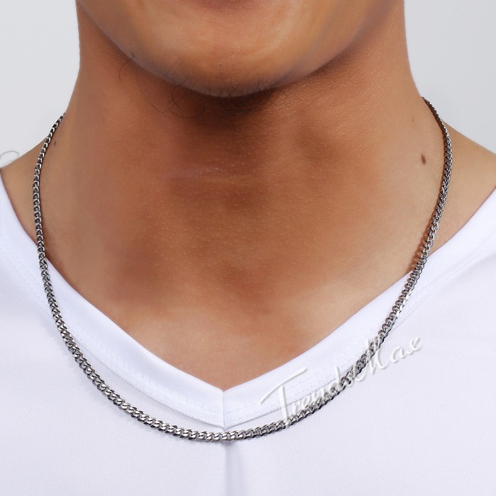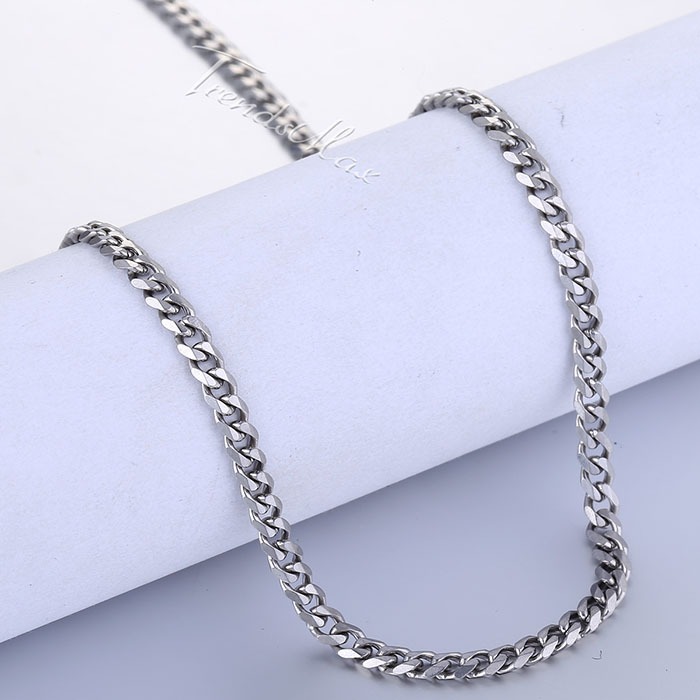 3MM Mens Chain Curb Cuban Link Silver Tone Stainless Steel Necklace 18-30" Long
