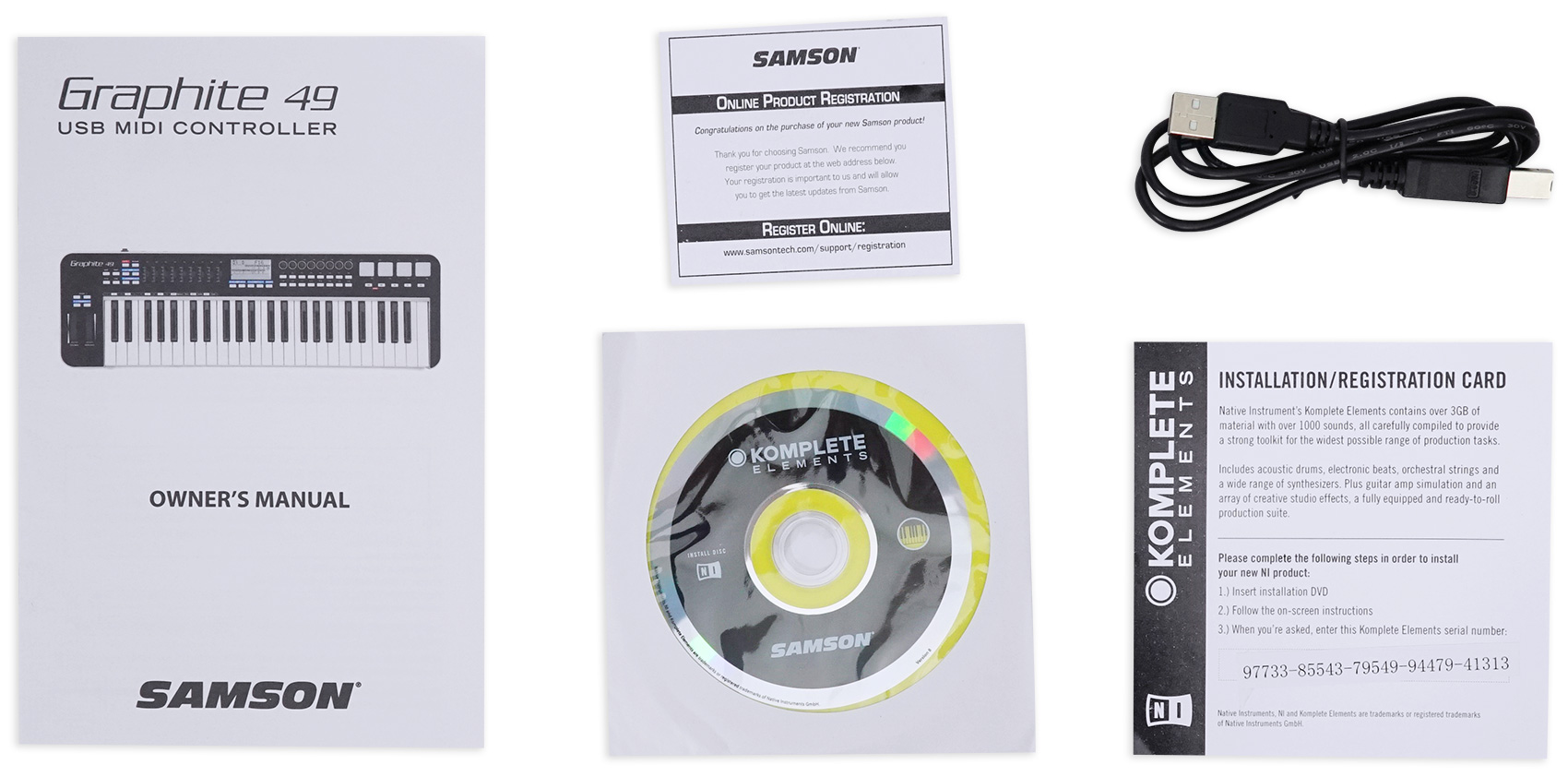 Bundled with the Graphite 49, Native Instrument’s Komplete Elements 8 software offers a comprehensive selection of studio-quality sounds, effects and tools for modern music production, composition and sound design. With over 3GB of samples, Komplete provides you with more than 1,000 premium sounds and 3 mighty player engines – all carefully compiled to provide a strong toolkit for both stage and studio. It’s a ready-to-roll professional software package for all production styles.