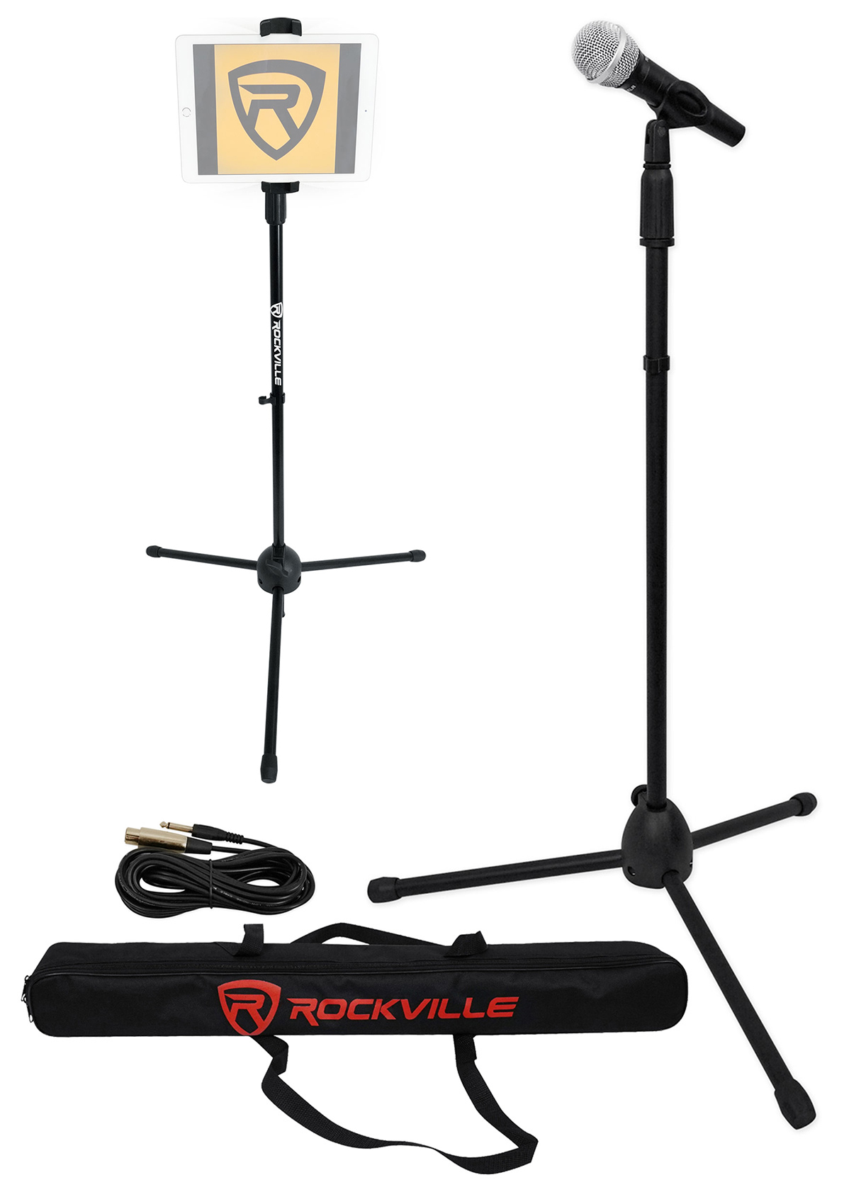 Package: Rockville Pro Mic Kit 1 With High-End Metal Microphone, Mic Stand, Carry Bag, and Cable + Rockville iStand 20 Tablet/Smart Phone Tripod Stand-Fits iPhone iPad Galaxy+More