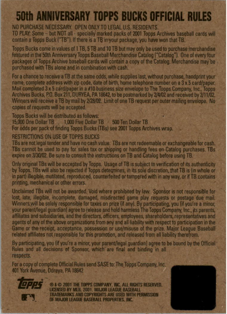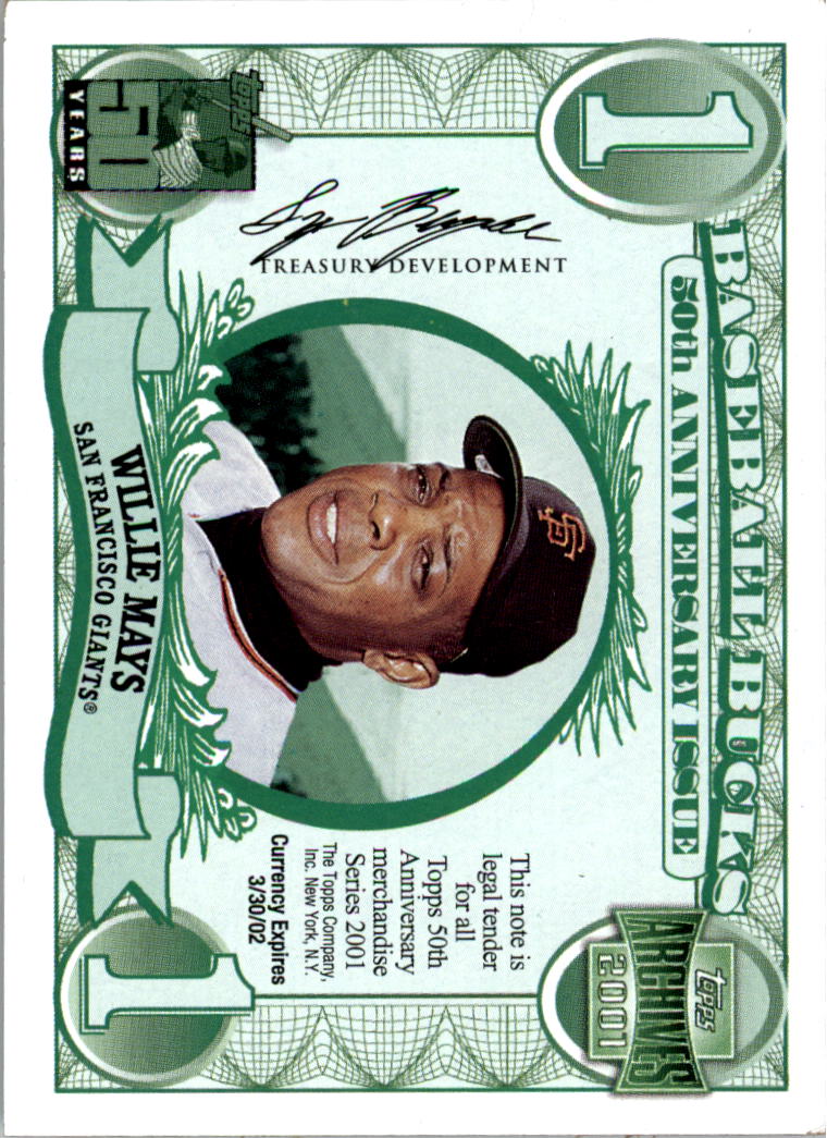 2001 Topps Archives Bucks #TB1 Willie Mays $1 - NM-MT