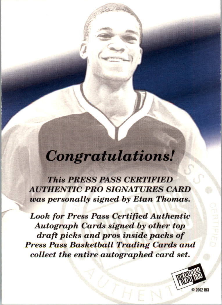 2002 Press Pass Pro Autographs #12 Etan Thomas AUTO - NM-MT