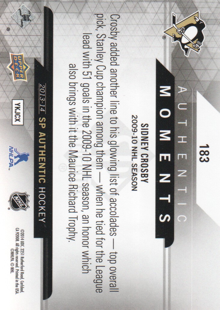 2013-14 SP Authentic #183 Sidney Crosby AM - NM-MT