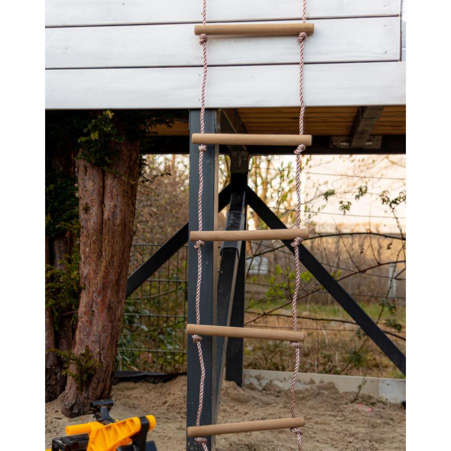 - Seil jeweils unter den Sprossen geknotet