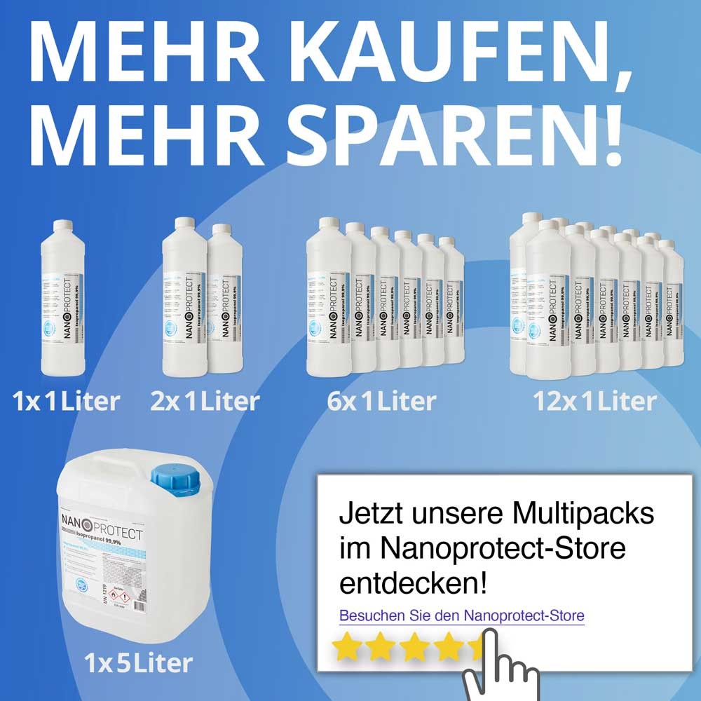 Ein wichtiger Vorteil von 99,9 % Isopropanol ist die fettlösende Wirkung. Der besonders hohe Alkoholgehalt macht aus Isopropanol ein zuverlässiges Desinfektionsmittel. Genau wie Ethanol ist es in der Lage, die Hüllen von verschiedenen Viren, Bakterien wie auch die Zellhüllen von Pilzen anzugreifen und zu zerstören. Dadurch werden die Keime inaktiv und stellen keine Gefahr mehr für Mensch und Tier dar. Somit kann die Keimbelastung durch die Reinigung mit Isopropanol deutlich minimiert werden.