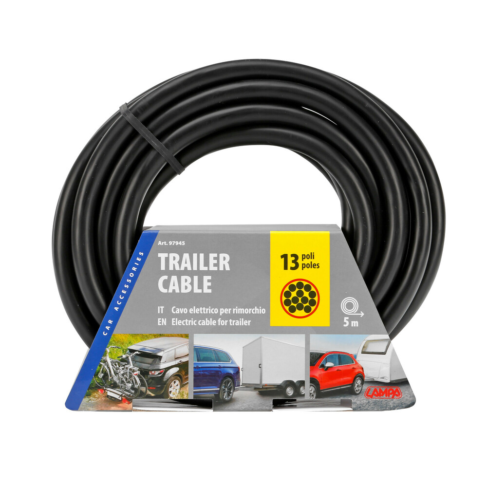 Cavo elettrico per rimorchio, 13 poli Lunghezza 5 metri. Sezione cavo singolo 0,75mmq. Diametro esterno 11mm