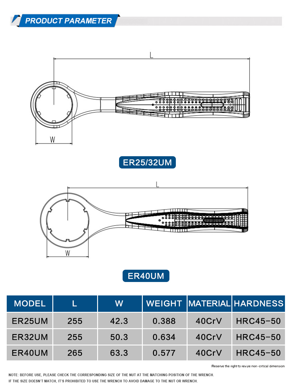 Package list: ER25UM Wrench*1pc