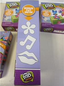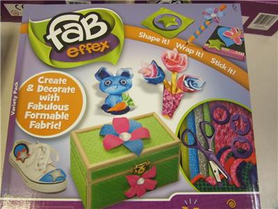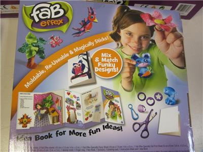 Each kit Includes: 140 Fab Effex Pieces, 6 Fab Effex Sheets, 1 Fab Effex Speciality Fuzzy Sheet, 1 Fab Effex Speciality Foil Print Sheet, 3 Hand Molds, 1 Sticky Square, 1 Animal Mold, 1 Finger Ring, 1 Scissors, 1 Greating Card, 1 Instruction Sheet, 1 Idea Book.