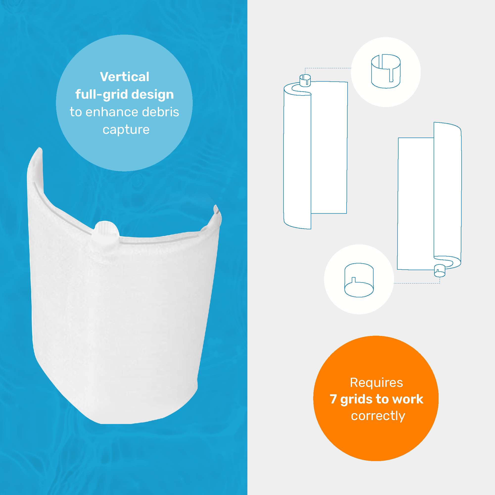 Use the grids with DE powder for pool filter applications to trap dirt and debris down to an average of 2 to 5 microns. What's more, the filter media ensures less resistance to water flow, longer cycles between backwashes, and great DE caking properties for efficient debris and particle capture.