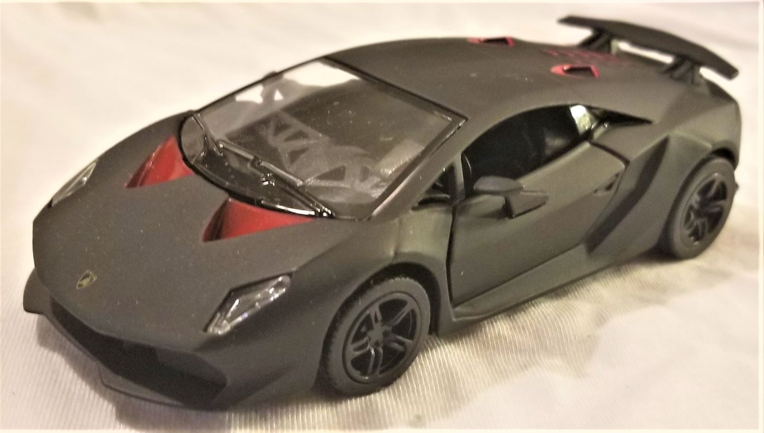 This is a Brand New Kinsmart - 1:38 Scale Model Lamborghini Sesto Elemento Black. The model is about 5 inches long. This model comes with pull back & go and opening doors features. These models come in a big display box and they don't have individual boxes. They will be expertly packed and shipped.