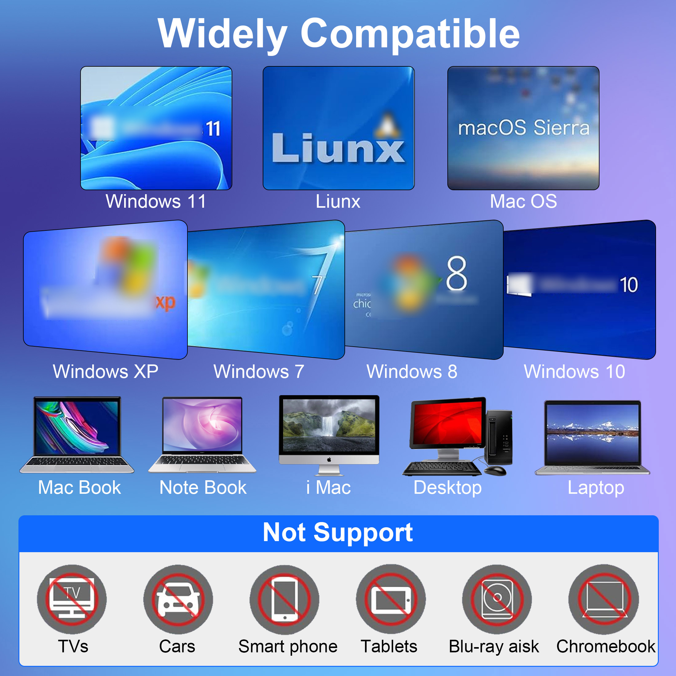 🔔🔔Note 2: Not compatible with Chromebook, TV, tablet, iPad, mobile phone, projector, truck, or car. Windows 11 requires a media player and network.