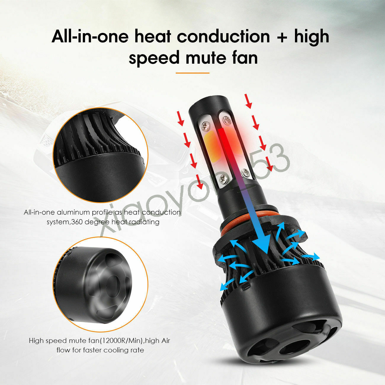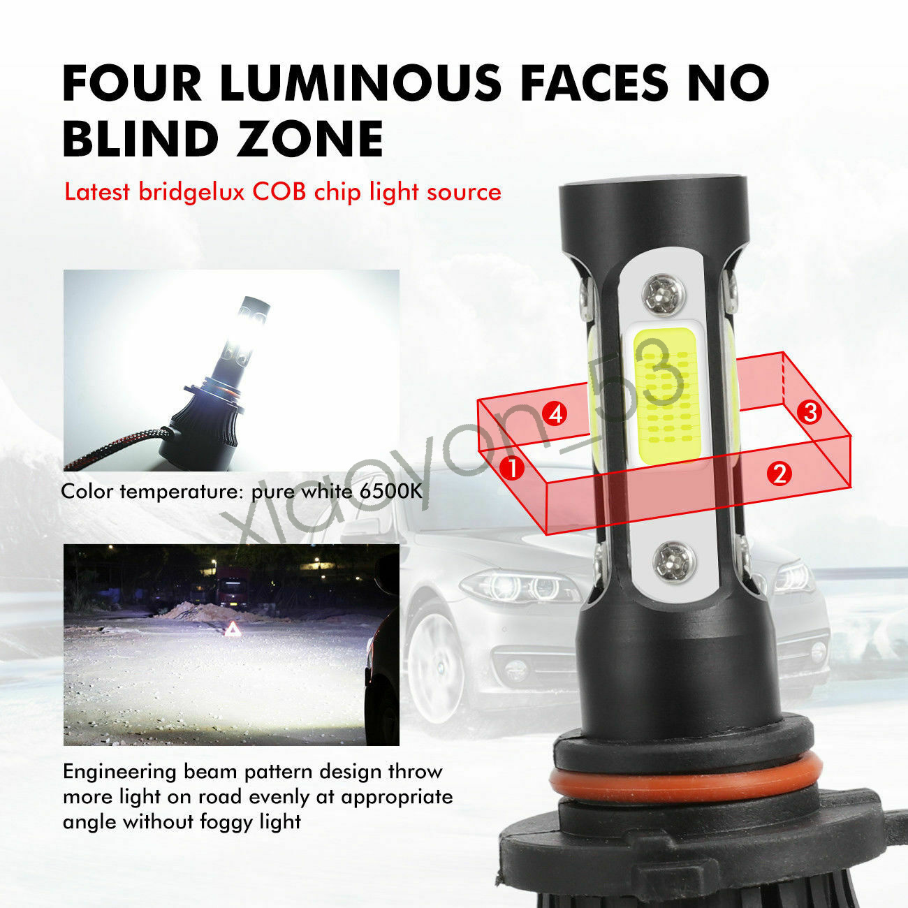 High brightness High temperature resistant High purity of luminescence Good stable performance Built-in Driver Ballast Instant on fast cooling Energy saving environmental Long lifespan(>50000hr) Interchange Part Number: Use for high Beam, Low Beam, DRL or Fog Lights… LED Type: 4Pcs Led Chips Each Bulb Other Part Number: 6000K-6500K(Xenon HID Pure White) Head Light Lamp Bulbs Beam Angle: 360 Degrees Placement on Vehicle: Left, Right, Front Heat Control: Aluminum shell base including Turbo cool fan Color: 6000K-6500K(Pure White Color) Condition: 100%Brand New/ Never Used Need additional Parts or Modification? 100% Integrated Design, Plug and Play. (Few vehicles may require load resistors to stop flickering or fix error message) Package include: