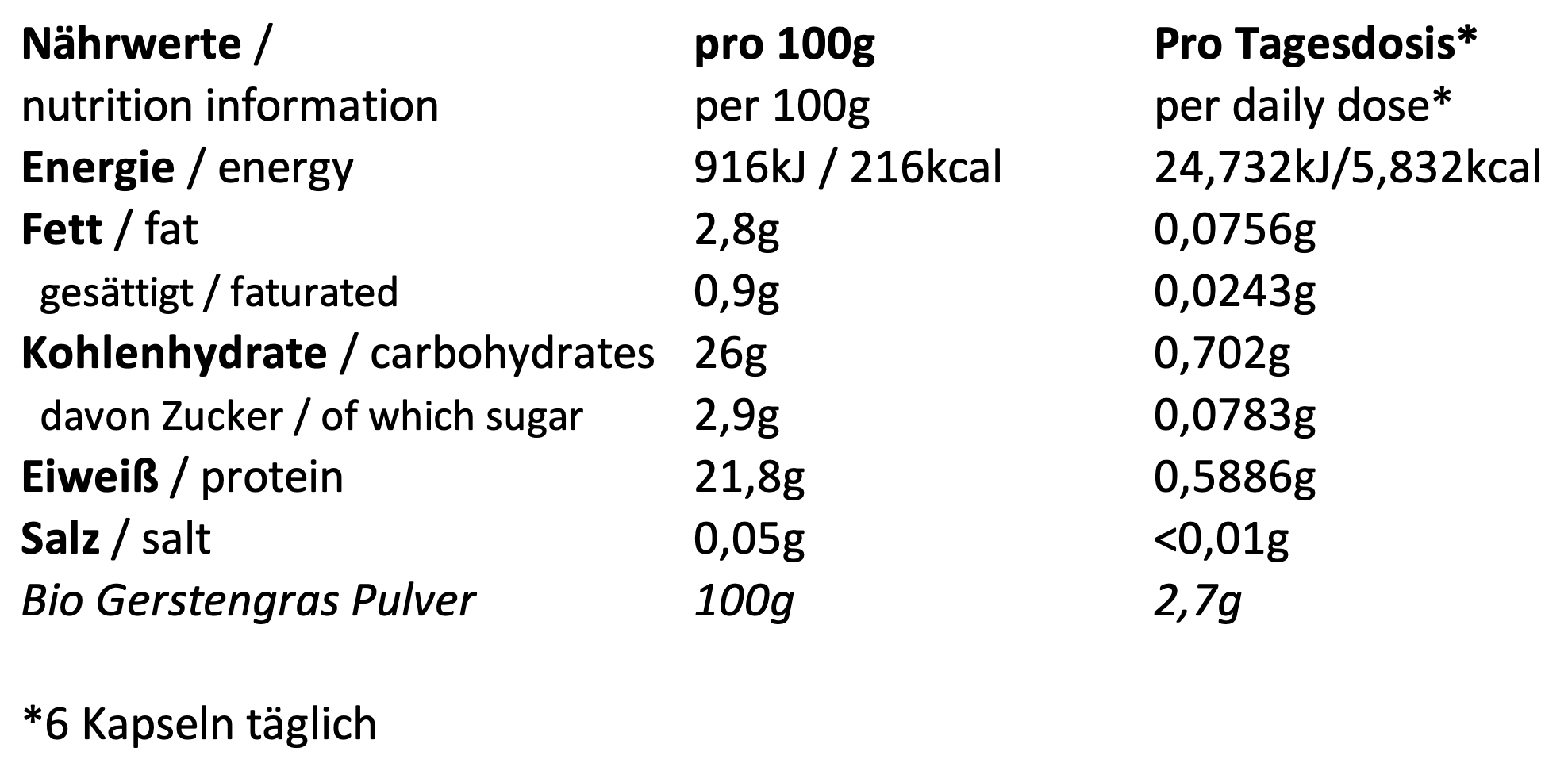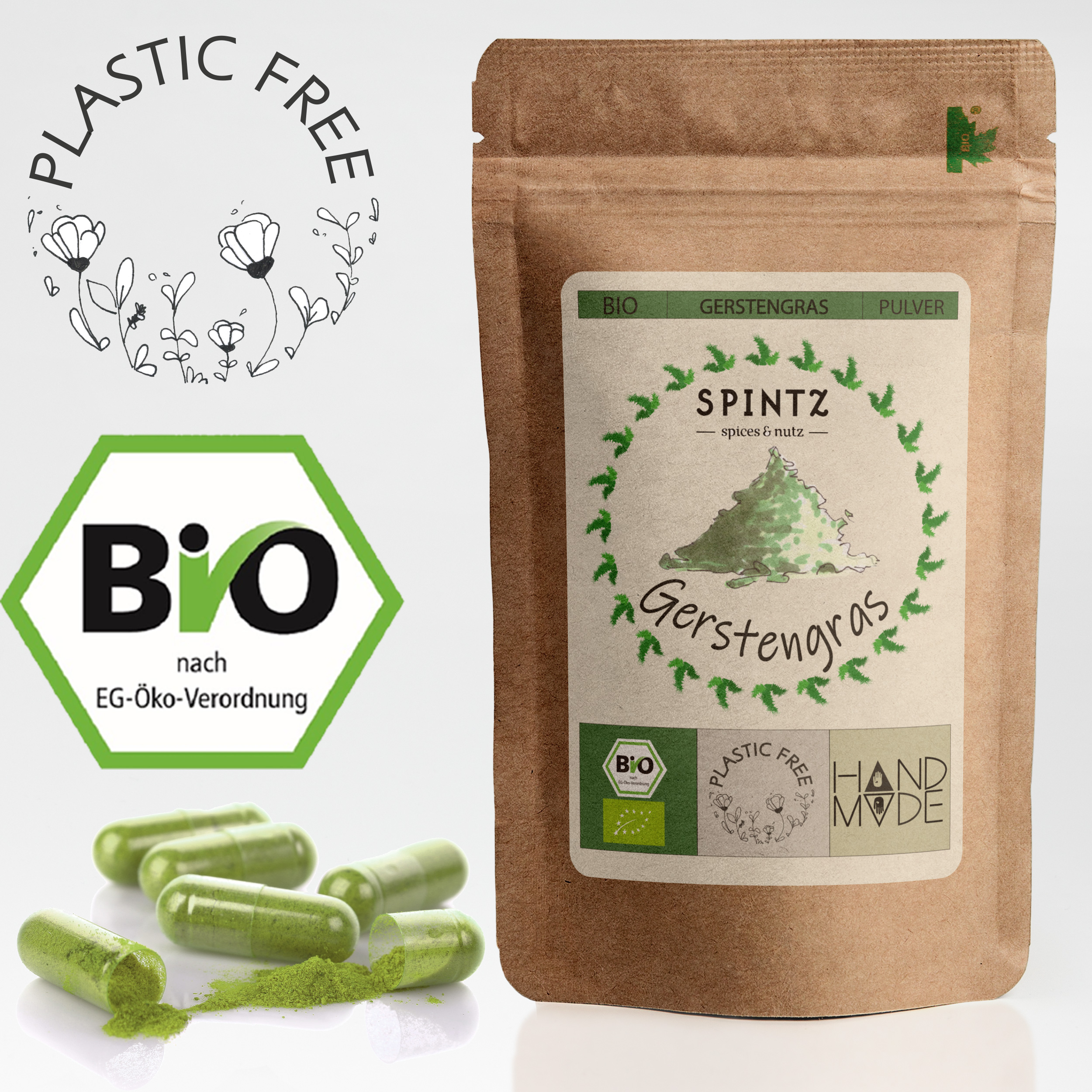 Entdecke unsere Gerstengraspulver neu mit unseren SPINTZ Bio Gerstengras-Kapseln. Diese kleinen Kapseln sind gefüllt mit 100% biologischem Gerstengraspulver. Die Hülle unserer Kapseln ist natürlich ebenfalls rein pflanzlich und sind somit ideal geeignet für die vegane Ernährung. Gerstengraspulver ist schon lange als Superfood bekannt und kann nun durch diese praktische Form leicht in Deinen Ernährungsalltag eingebaut werden. Probiere Gerstengras neu mit unseres Bio Gerstengraskapseln.