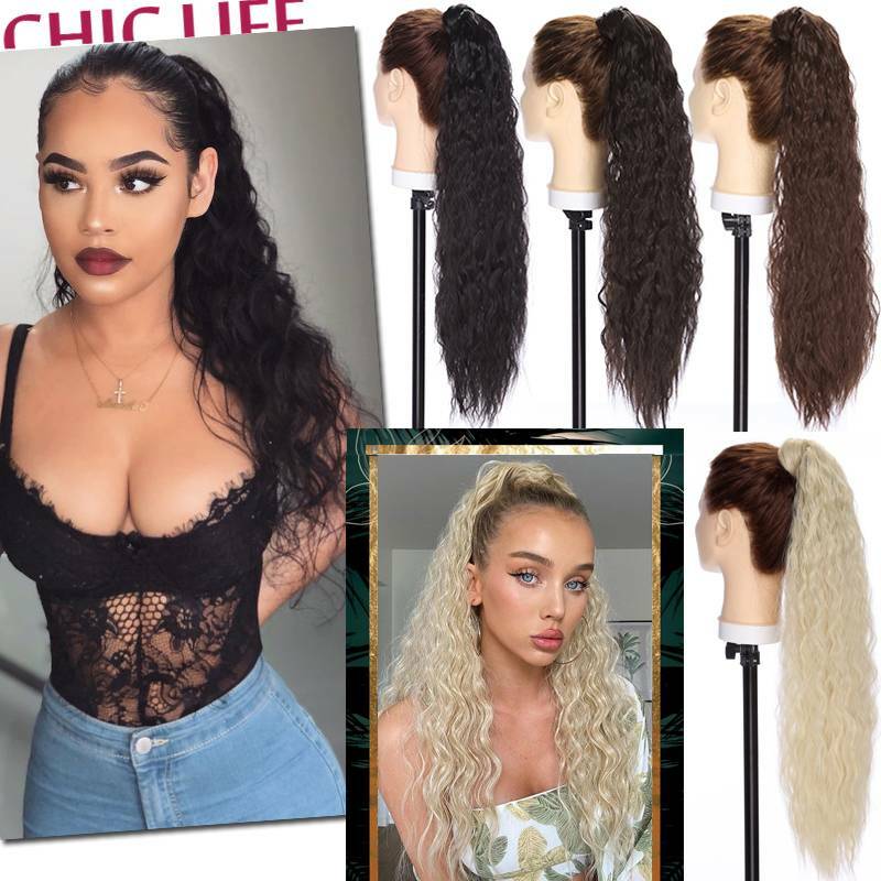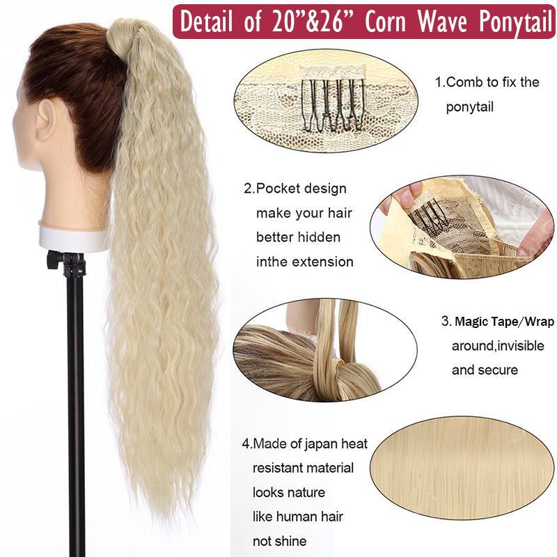 Thick Hair Wrap Around Corn Wave Ponytail Clip In Pony Tail Extensions Hairpiece