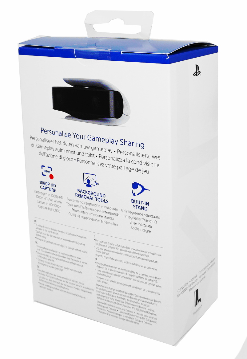 1080P-AUFNAHMENimm dich selbst in flüssigem und scharfem Full-HD mit den Dual-Weitwinkelobjektiven der Kamera auf, wenn du besonders epische Gaming-Momente erlebst. Erstelle mit der Create-Taste des DualSense Wireless-Controllers sofort Aufnahmen oder streame dich und dein Gameplay.INTEGRIERTER STANDFUSSMit dem integrierten verstellbaren Standfuß gelingen dir perfekte Aufnahmen. Dank des kompakten Designs lässt sich die Kamera sicher über oder unter dem Fernseher platzieren, sodass du den Winkel ganz auf dein Setup abstimmen kannst.TOOLS ZUM ENTFERNEN DES HINTERGRUNDSDank der integrierten Tools zum Entfernen des Hintergrunds der PlayStation5-Konsole spielst du in deinen Videos die Hauptrolle. Mit der HD-Kamera kannst du dich selbst in deine Gameplay-Videos einfügen, wenn du im Bild-im Bild-Modus streamst, wobei du den Hintergrund zuschneidenoder mit einem Greenscreen ganz entfernen kannst.WAS SIE NOCH ÜBER DAS PRODUKT WISSEN SOLLTENNeu und originalverpackt