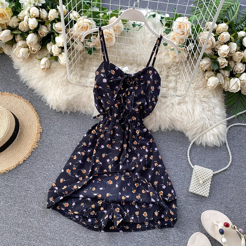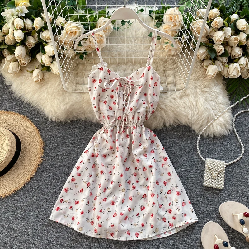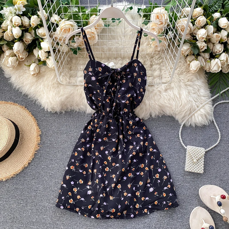 Floral Print Mini Spaghetti Strap Dress - Simple Casual Summer Wear For Women