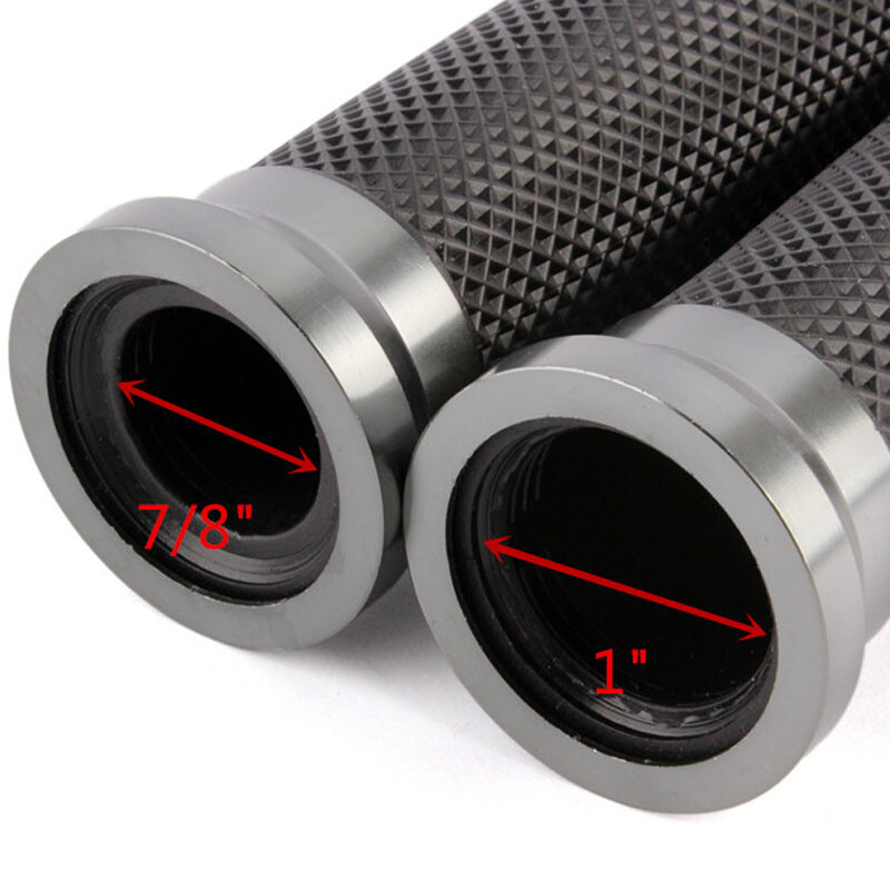LEFT side is 7/8", RIGHT side is 1" for twist gas throttle