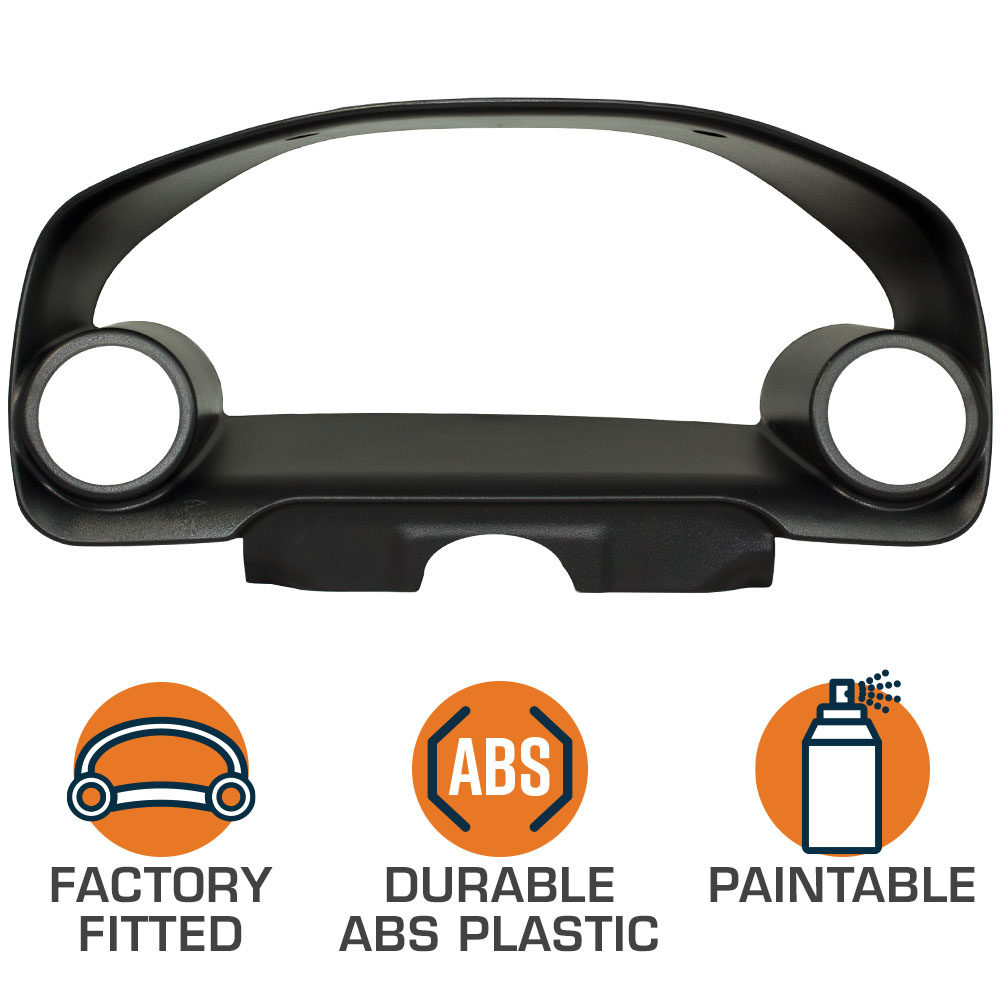 GlowShifts Black Dual Gauge Cluster Bezel Pod for the 2001-2005 Honda Civic is designed to replace the trim around your factory gauges, giving you the ability to mount (2) 2-1/16 (52mm) gauges on either side of your instrument panel for a completely custom look. This cluster pod is manufactured from high quality ABS plastic that is designed to withstand fading, cracking and warping, and can be painted using ABS plastic paint to match your interior.