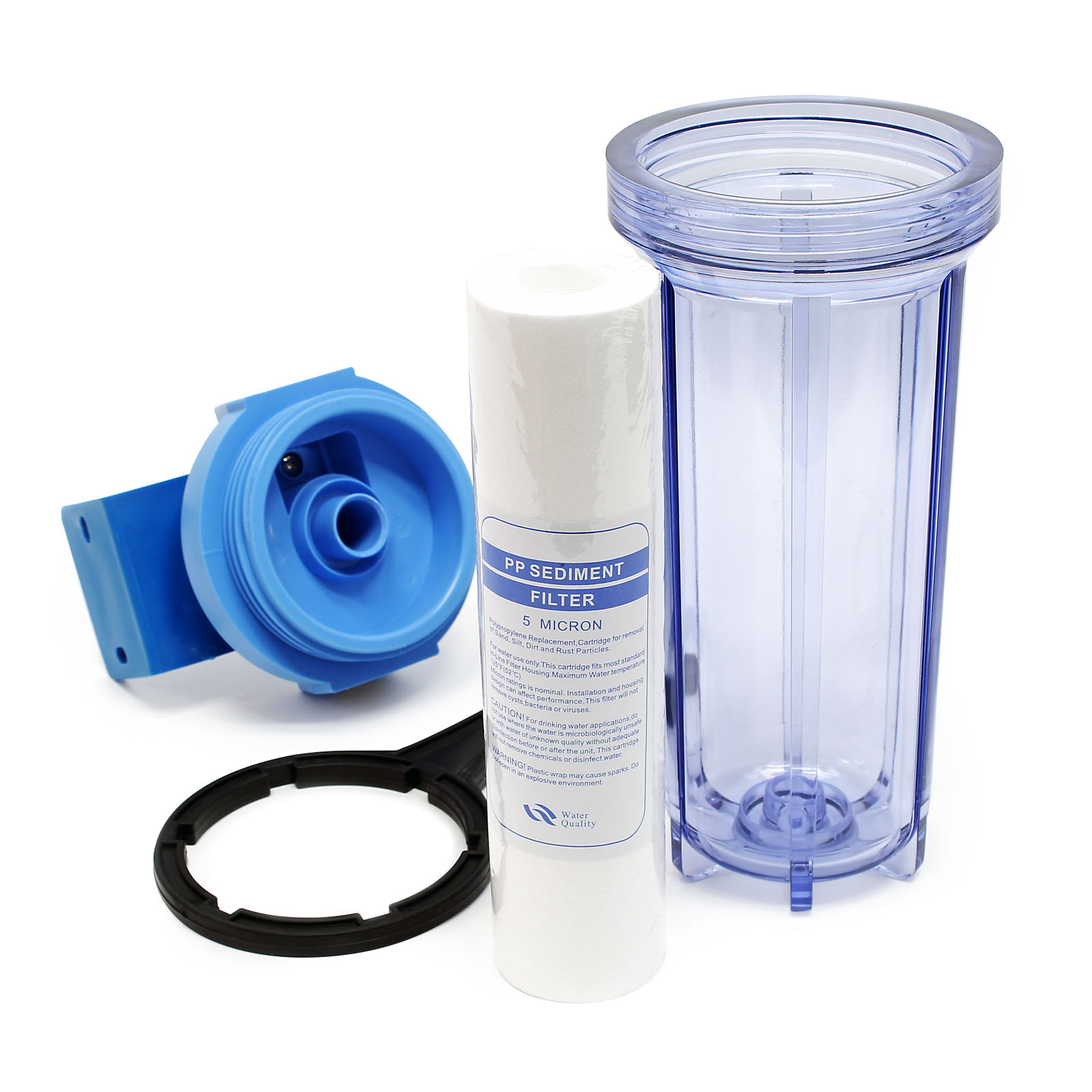Das hier angebotene Wasserfiltersystem wird mit einem 5-µ-Sediment-Filtereinsatz ausgeliefert, der zuverlässig Sand, Rost und Algen und andere Schwebeteilchen aus dem Wasser entfernt.