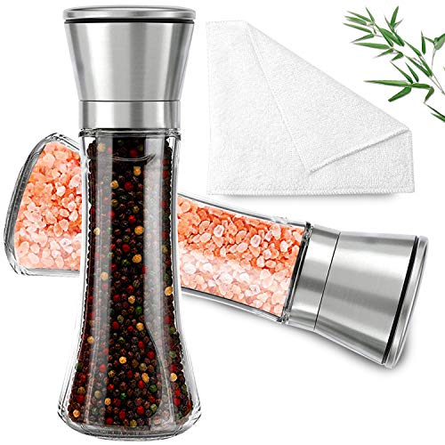 【Sealed stainless steel salt and pepper grinder】 The salt and pepper grinders are made of the highest grade non-corrosive brushed stainless steel and BPA-free thickened glass bottles, with a high-grade ceramic rotor, and non-corrosive. A sealed lid prevents the seasoning from oxidation and keeps your Himalayan sea salt, peppercorns, spices, or herbs fresh and lasting. And make sure that salt and pepper are only left on your food and not on the entire table or counter.