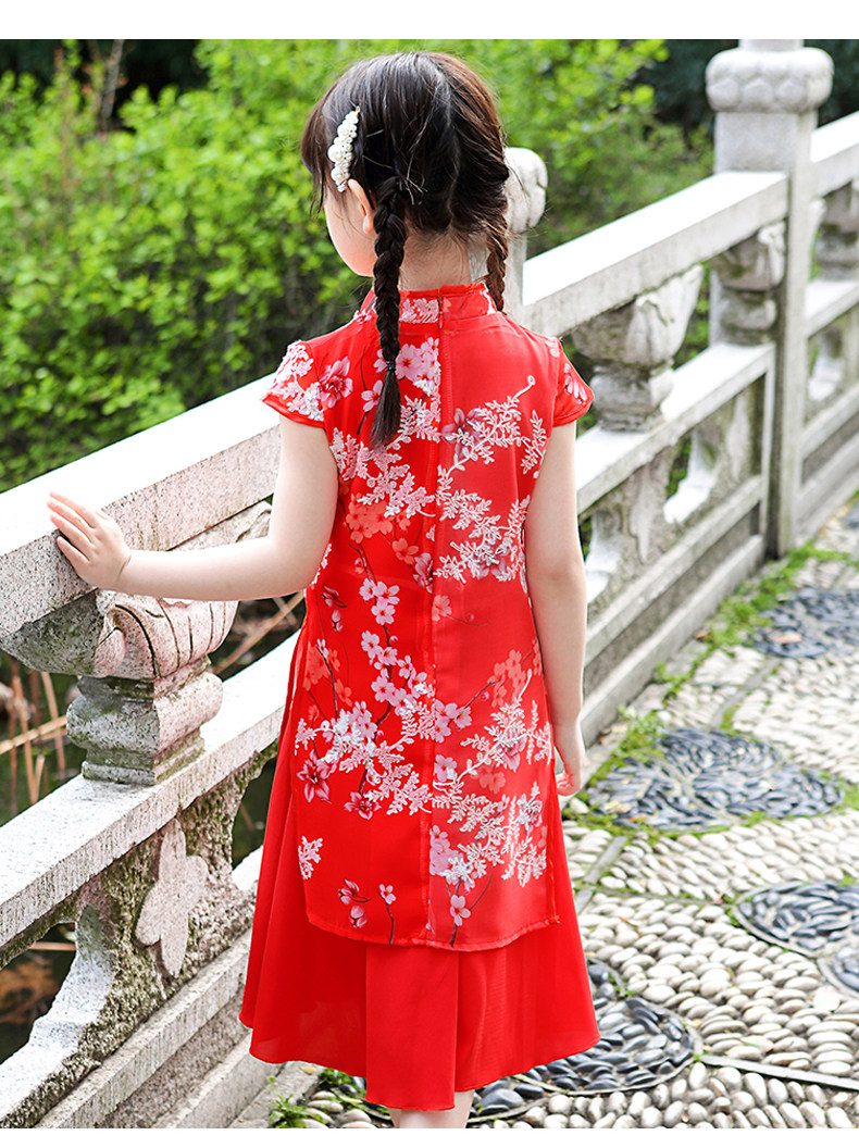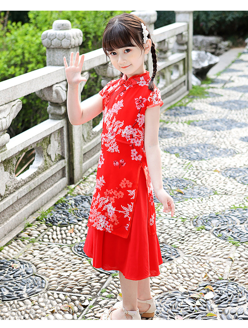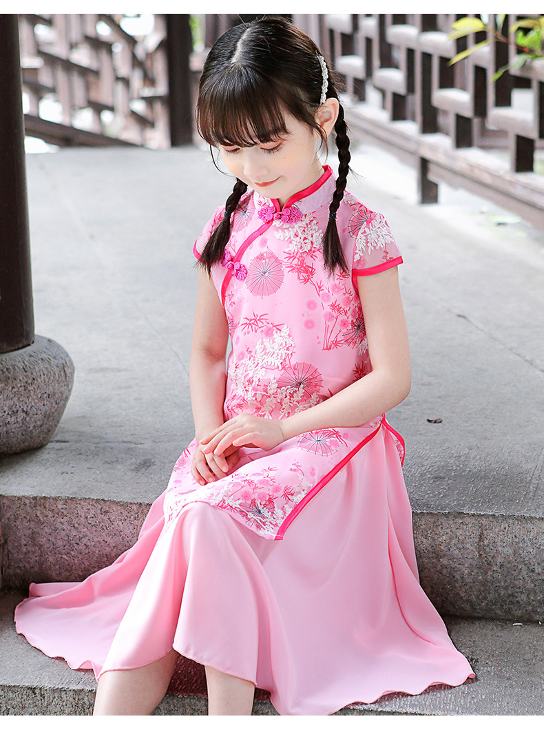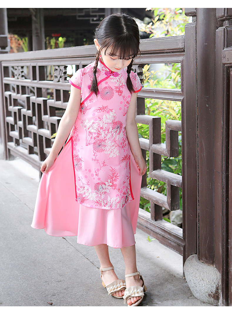Kids Girl Chinese New Year Asian Traditional QIPAO Han Tang Costume Tunic Summer Dress C1055D