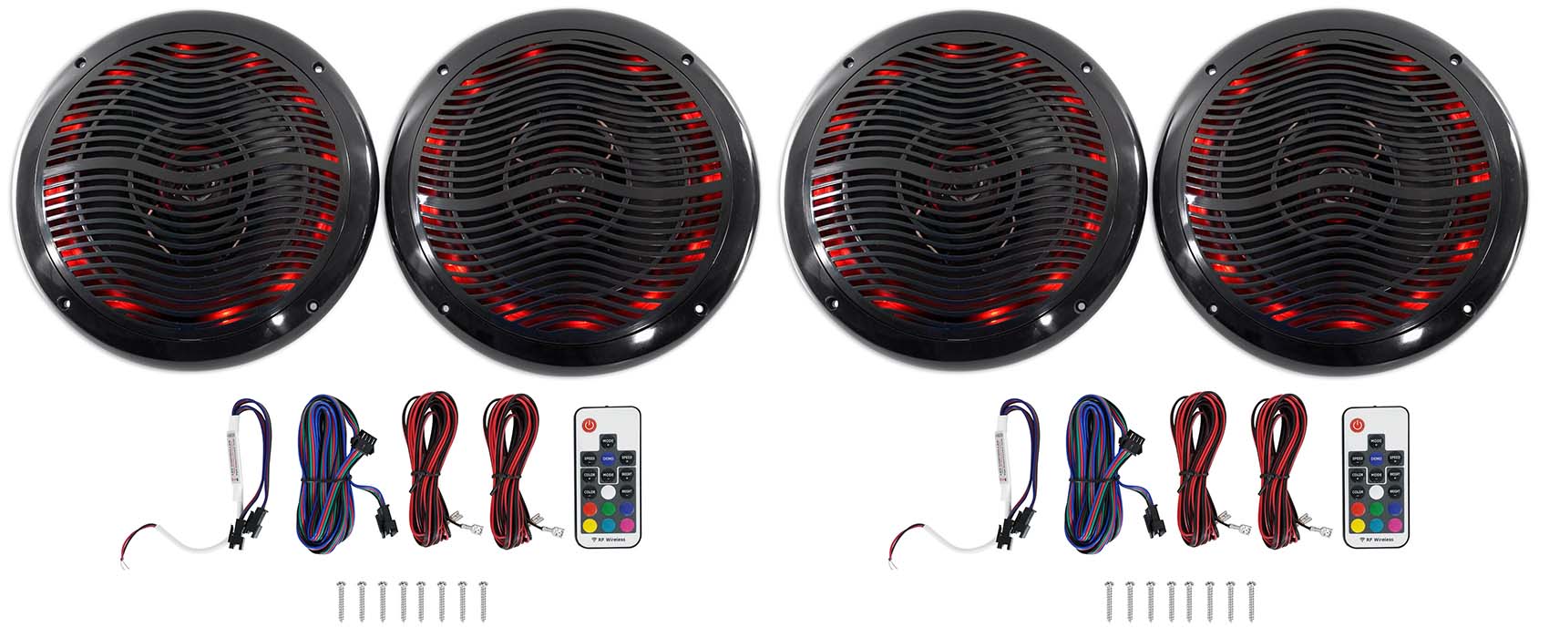 Price is for (2) Rockville RMC65LB 6.5" 2-Way Black Marine Speakers w/Multi Color LED+Remote Totaling 1200 W!