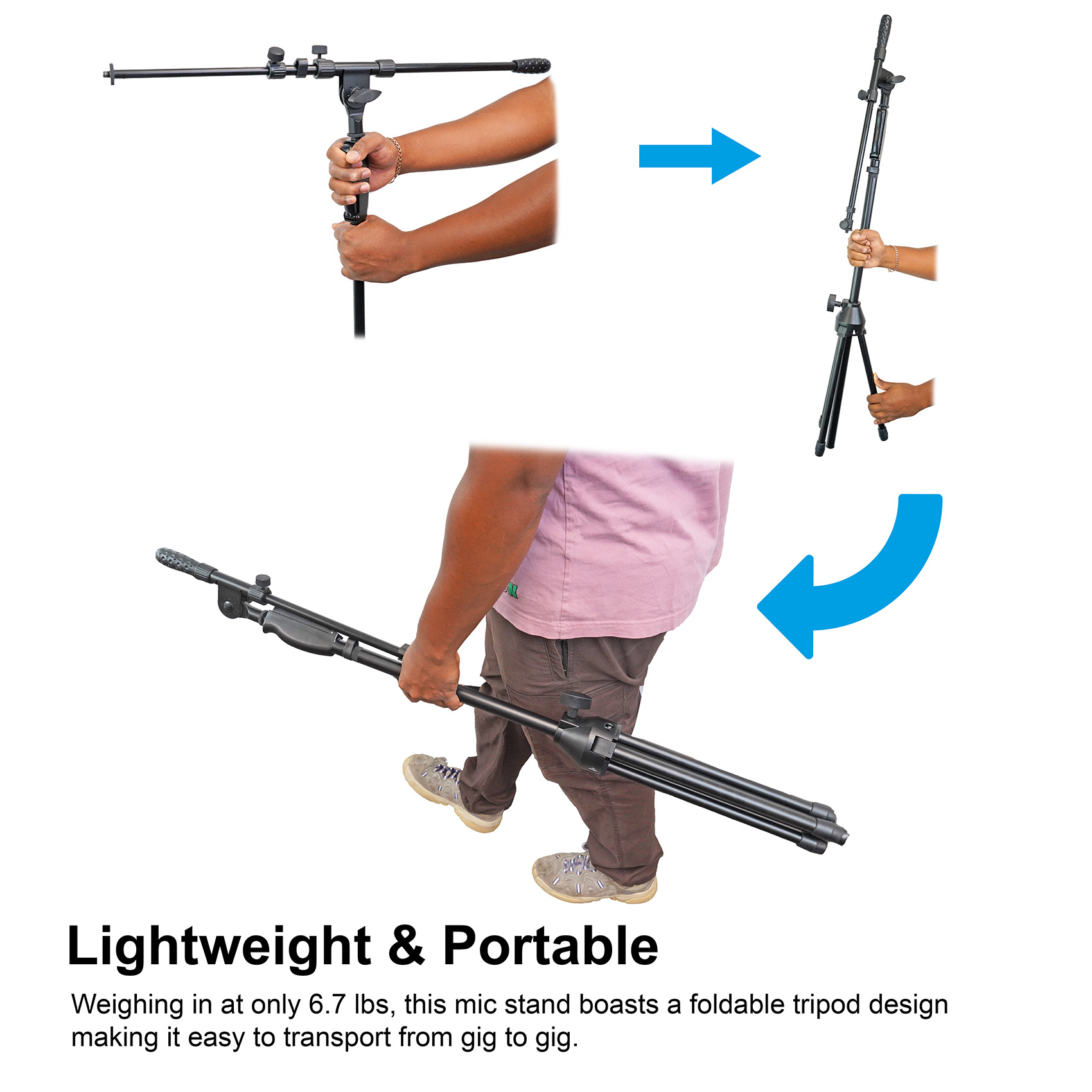 Despite its impressive features, this microphone stand weighs in at only 6.7 lbs, making it easy to carry and set up wherever your passion takes you.