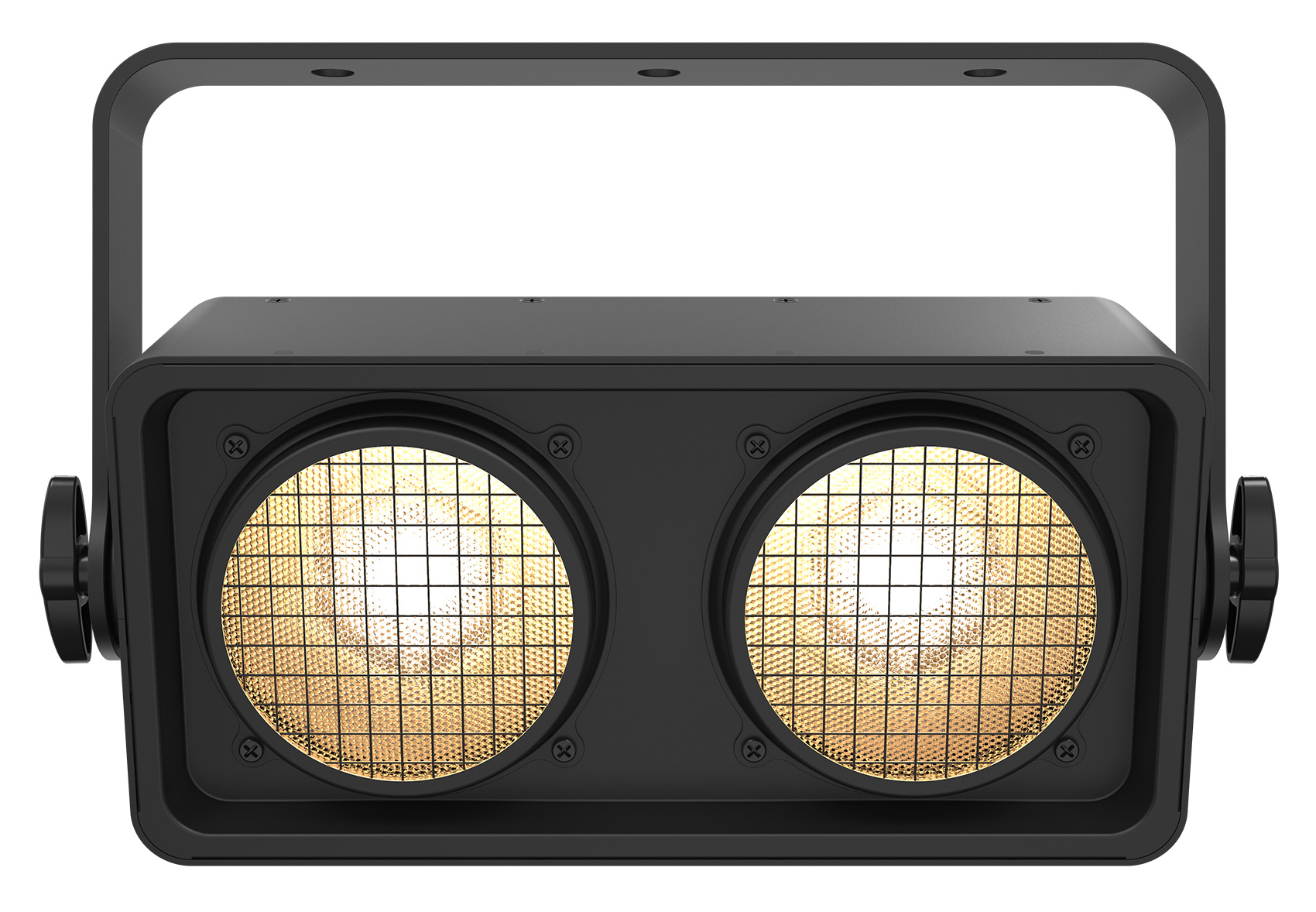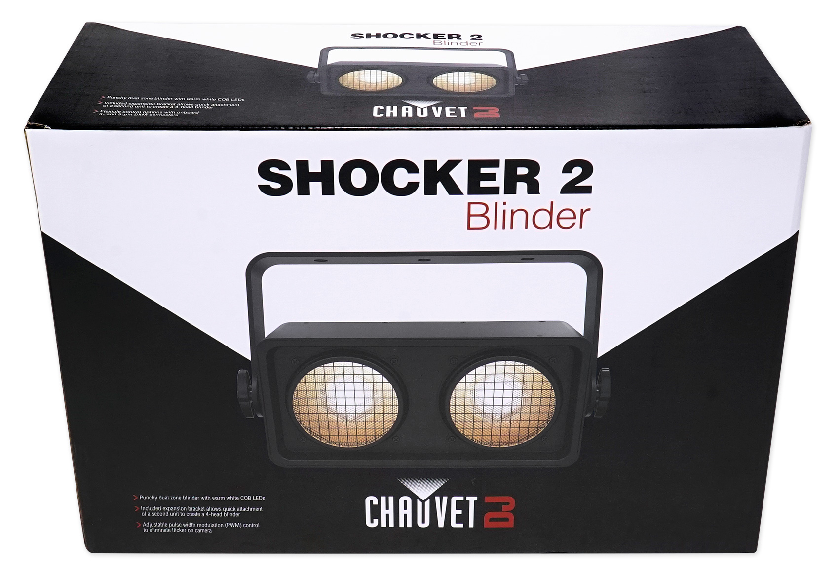 Shocker 2 is a punchy dual zone blinder with warm white 85-watt COB LED's. Perfect for theatrical productions, concerts, dance floors and more, Shocker 2 has an included expansion bracket that allows quick attachment of a second unit to create a 4-head blinder. Adjustable pulse width modulation (PWM) control is on board to eliminate flicker on camera. Shocker 2 has PowerCON®-compatible power input/output connections for power linking and flexible control options with onboard 3- and 5-pin DMX connectors.