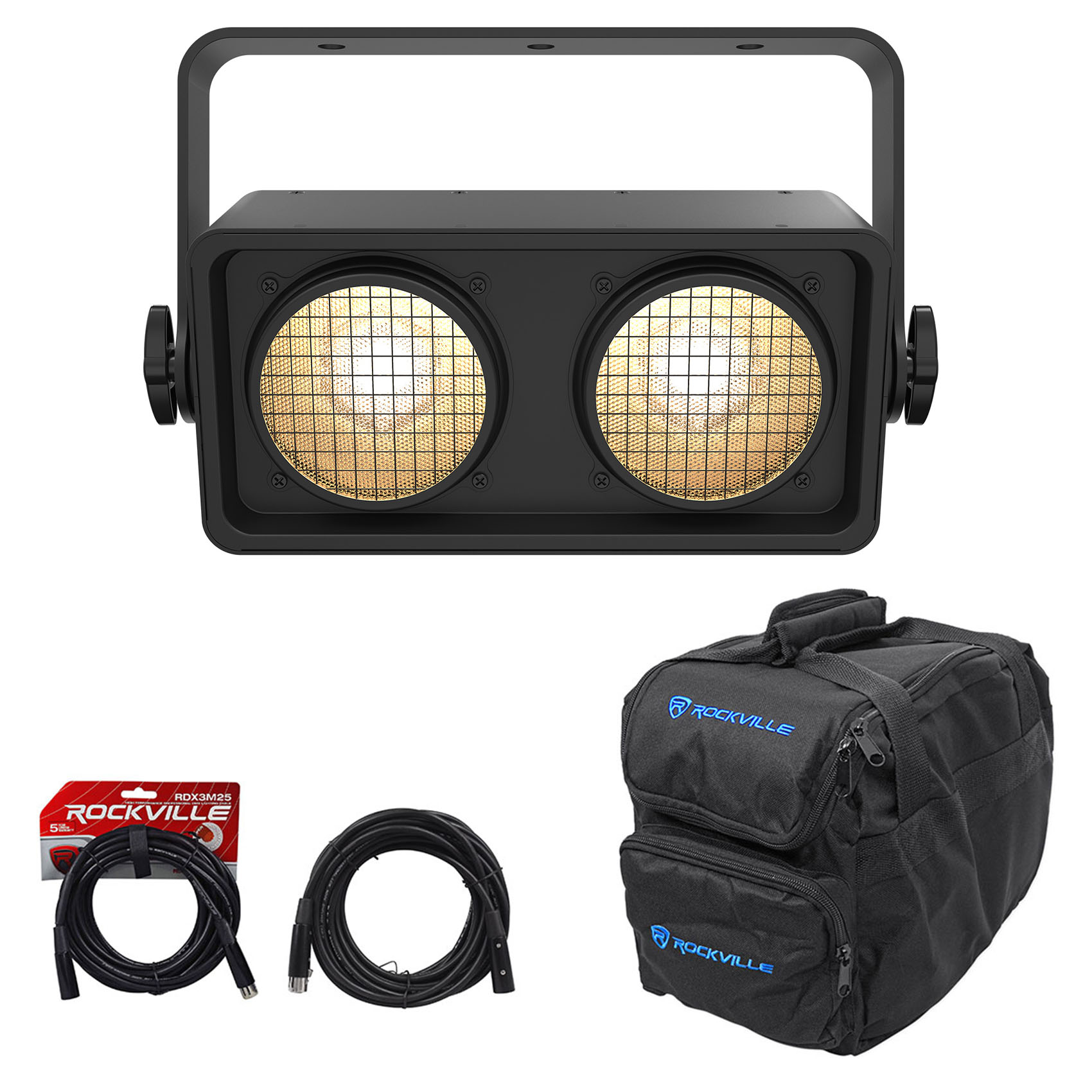Package: Chauvet Shocker2 Dual Zone 85 Watt DMX Control COB LED, Dance Floor, Blinder, Stage Light + Rockville RLB70 Lighting Bag For (4) Chauvet or ADJ Slim Par Lights+Controller With Padding, External Compartments, and Handles + Rockville RDX3M25 25' Black Nickel-Plated 100% OFC Copper 3-Pin Male-Female DMX Cable + Rockville RDX5M25 25' Black Nickel-Plated 5-Pin Male-Female DMX Cable