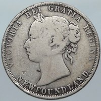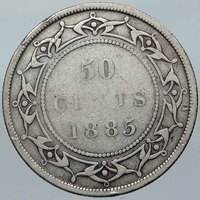 Canada - Newfoundland Victoria - Queen: 20 June 1837 – 22 January 1901 1885 Silver 50 Cents 29.85mm (11.35 grams) 0.925 Silver (0.3504 oz. ASW) Reference: KM# 6 (1870-76*-1900) VICTORIA DEI GRATIA REGINA. NEWFOUNDLAND, Victoria facing left. 50 CENTS, Text within ornamental circle.