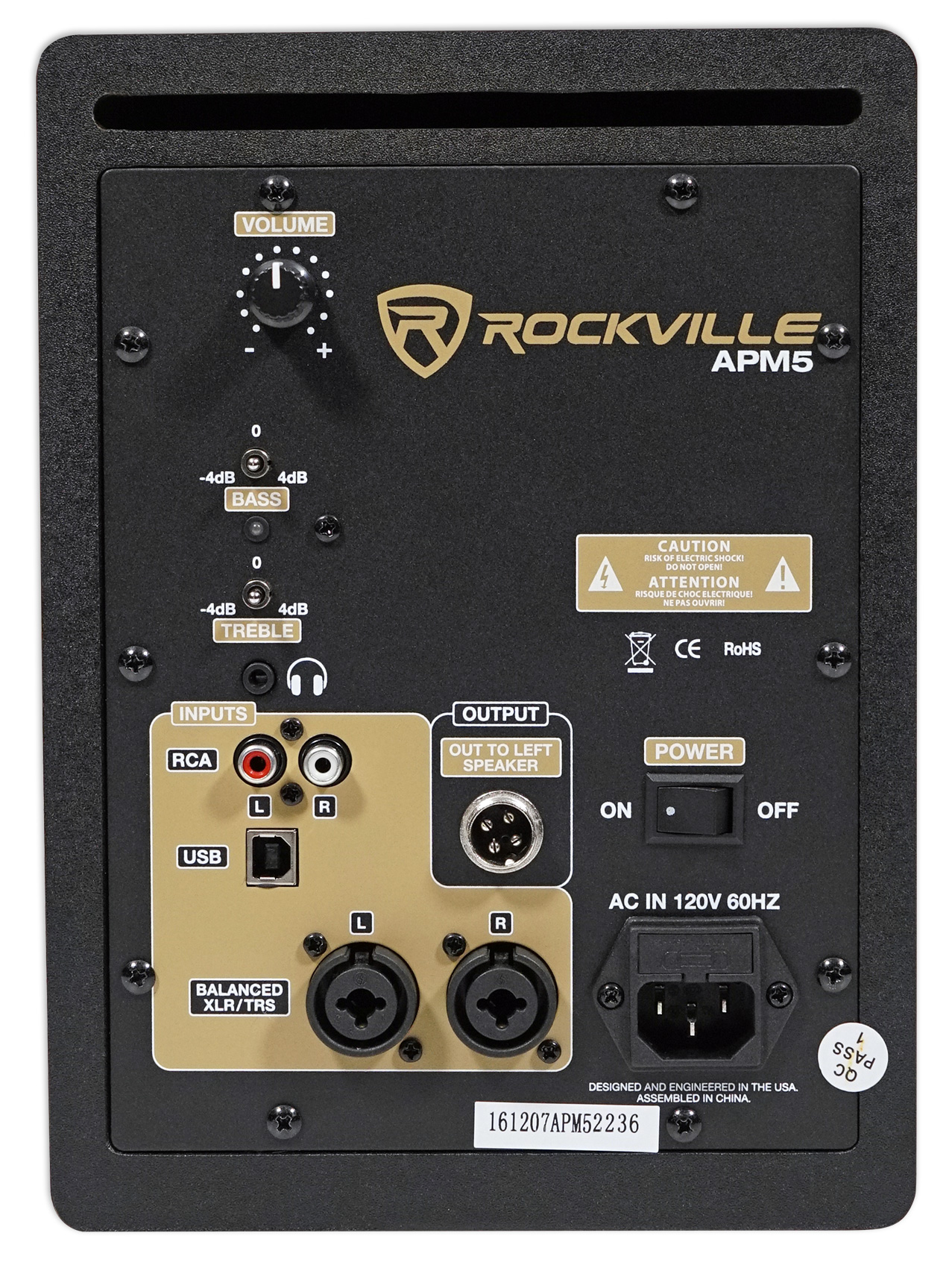 The Rockville APM5 Active Studio Monitor Comes in Pairs and each monitor will be bi-amped. What this means is that there is a separate amp for the highs and a Separate amp for the lows! Each speaker has 125 watts peak output power and 62.5 watts RMS giving you a total of 250 watts peak and 125 watts RMS per pair. We spent a lot of time developing the most premium studio monitors we ever built! I am very pleased and excited to talk to you guys about what we did to make these speakers sound as good as they do. If you are an audiophile you will find what we did to be quite amazing. Keep in mind, the only reason our price point is not 300 % higher is because you are buying manufacturer direct. We are one of the leading speaker manufacturers in the USA, and we have a state of the art manufacturing process. There is a lot to talk about so I will break it down into sections.