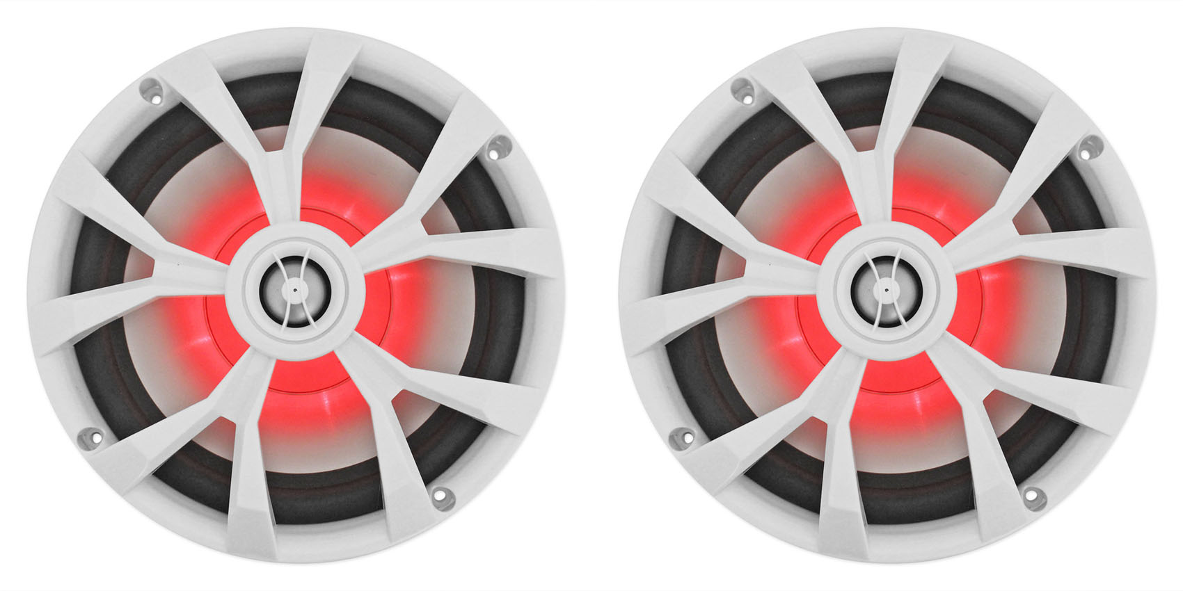 - Pair Rockville RKL80MW 8” 2-Way 900 Watt White Marine Boat Speakers with LED Lights