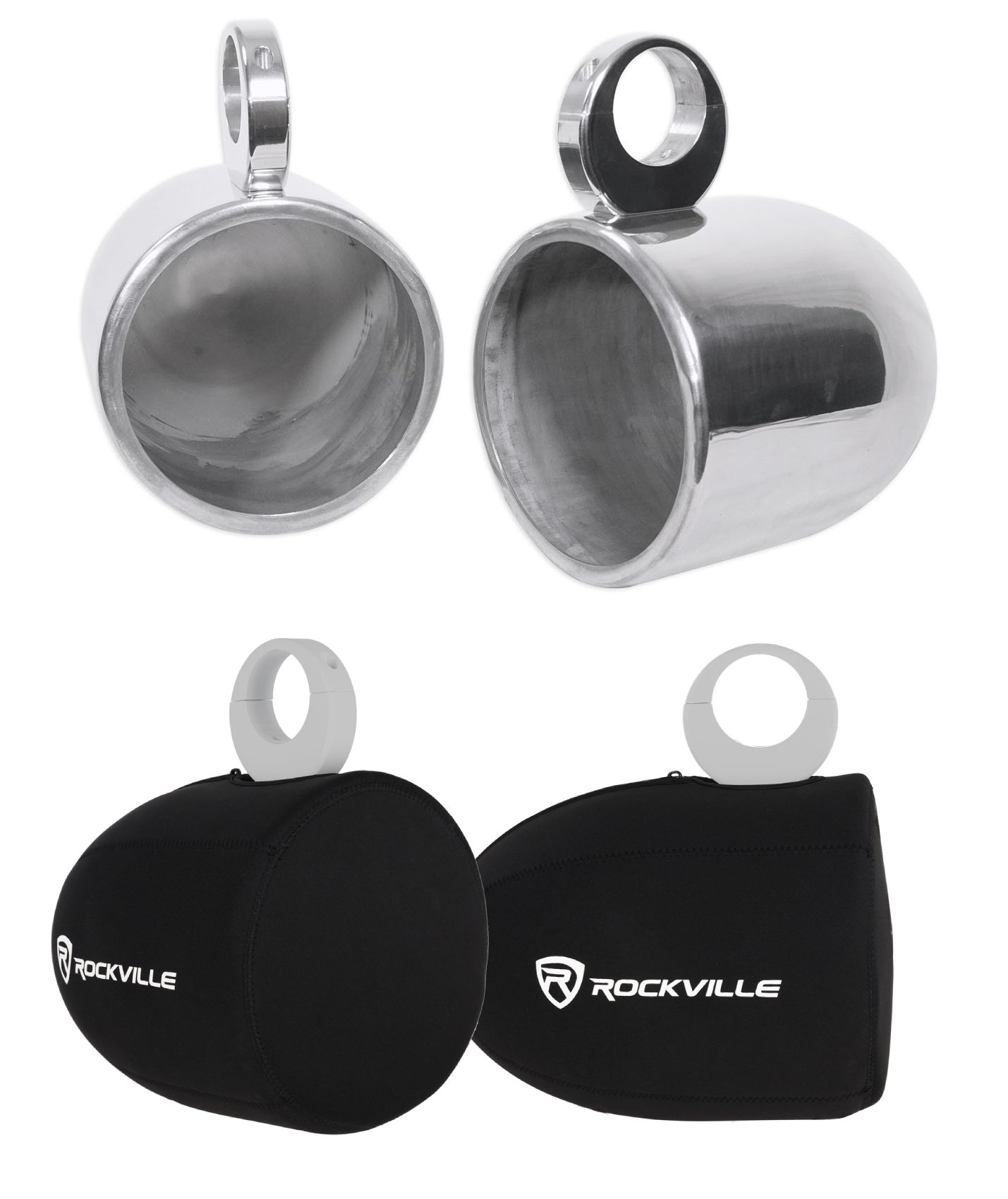 Rockville is proud to introduce our all new line of aluminum wakeboard cans. The MAC90S comes in pairs and includes our rugged universal aluminum clamp for easy installation to any wakeboard tower pole measuring from 2" to 2.5" diameter. Six precision molded high impact rubber inserts guarantee fitment on towers from 2" to 2.5". Our clamp inserts are precision-fitted to sit perfectly inside the metal clamps. The speaker terminals are safely enclosed inside the waterproof speaker canister.