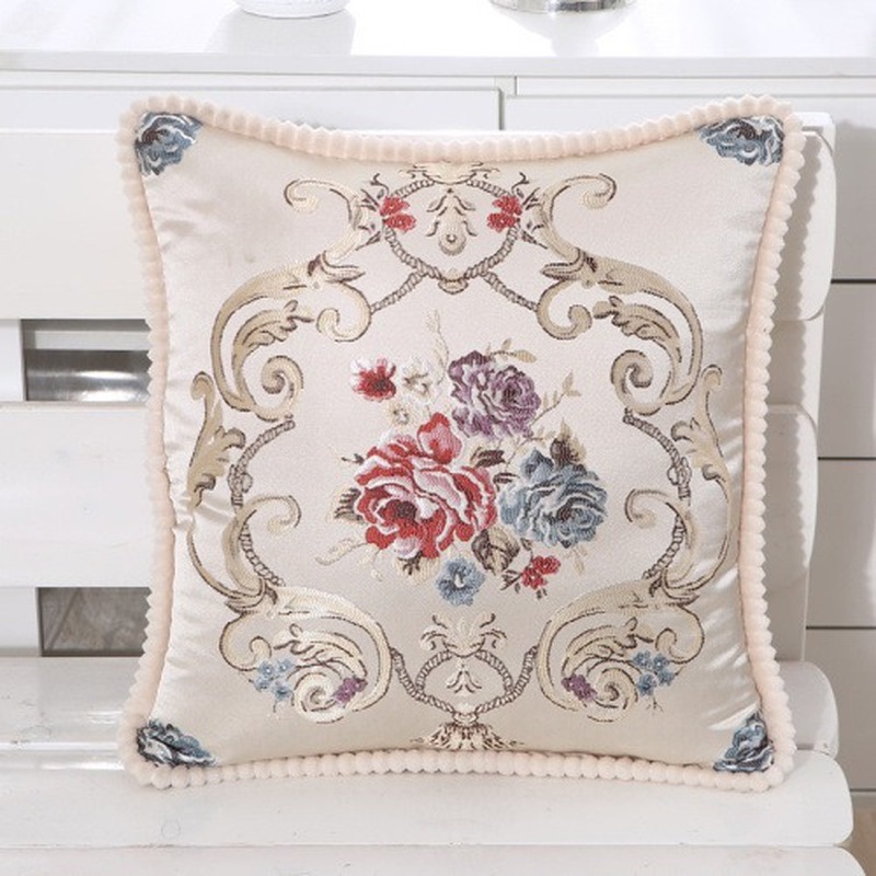 2x Embroidery Throw Pillow Case Cover Flower Curshion Sofa Decor Faux Satin Home
