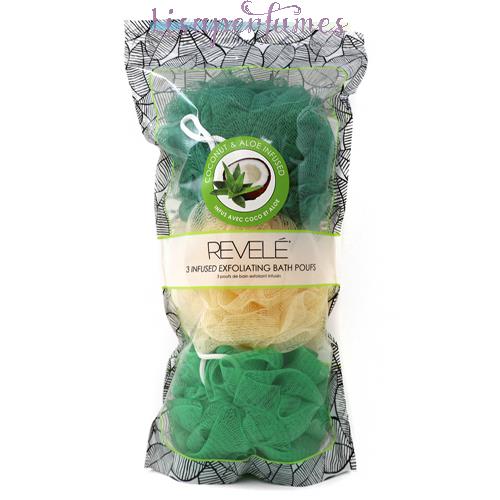 |  | | Brand | Revele | | Name | Coconut & Aloe Infused Exfoliating Bath Poufs | | Gender | N/A | | Type | Bath Poufs | | Size | 3 Piece | | Packaging | New |