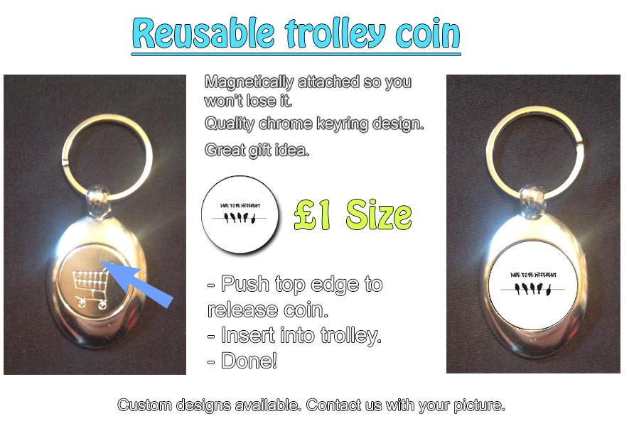 -Circular metal '£1' that magnetically clips on to a metal keyring.