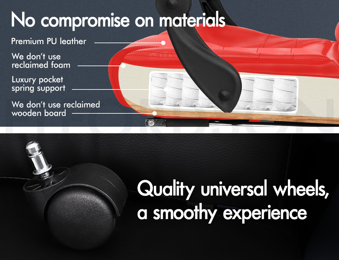 And unlike some other sellers, we have no compromise on materials used. We guarantee that no cycled foams are used, no backrest is cut short or narrow to save money, and no seat foam is cut thin to save cost.