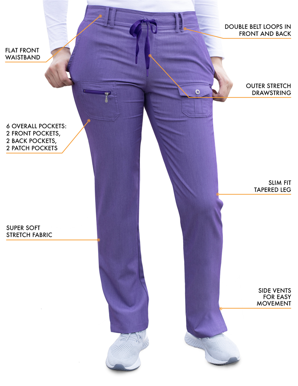 - DESIGN: This V-Neck Top & Multi Pocket Pants Scrub Set Brings The Ideal Balance Between Modern Design & Unmatched Functionality To Suffice To Every Modern Nurse. Top Comes With Elevated Double Stiched V Neckline & Curved Princess Seaming on Front & Back. Pants Come With A Mid Rise Slim Tapered Leg, Flat Front & Soft Back Elastic Waistbands With A Soft Stretch Outer Drawstring.