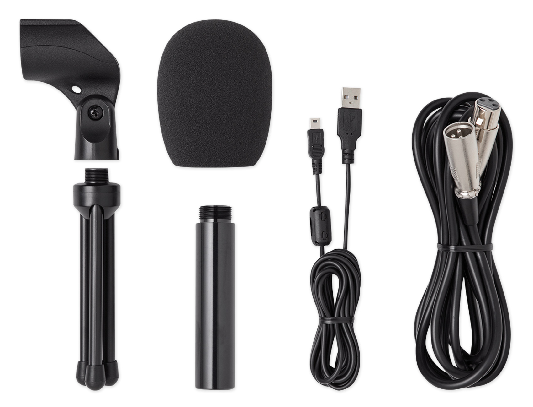 For convenient placement in front of your computer, the Q2U comes with a desktop tripod stand and extension piece. For use with this desktop stand or with any standard microphone stand, a mic clip is also included. A windscreen is also provided to minimize wind noise and plosives such as P-Pops. A 2.25m USB cable and 3m XLR cable complete the Q2U Recording and Podcasting Pack, including everything you need to get started on your next project.