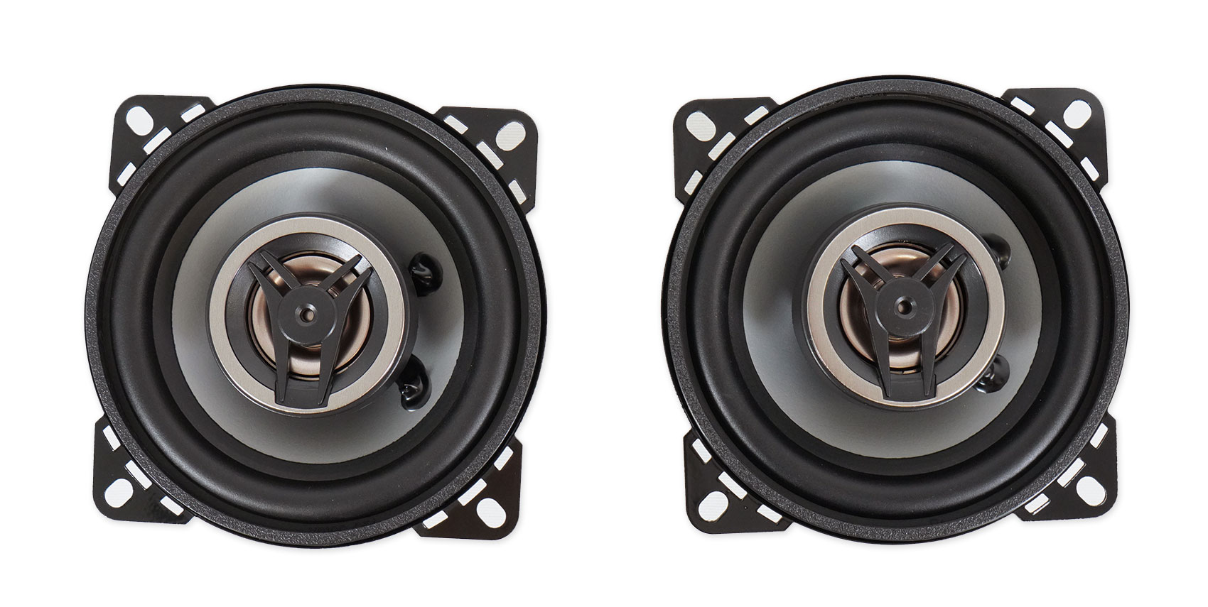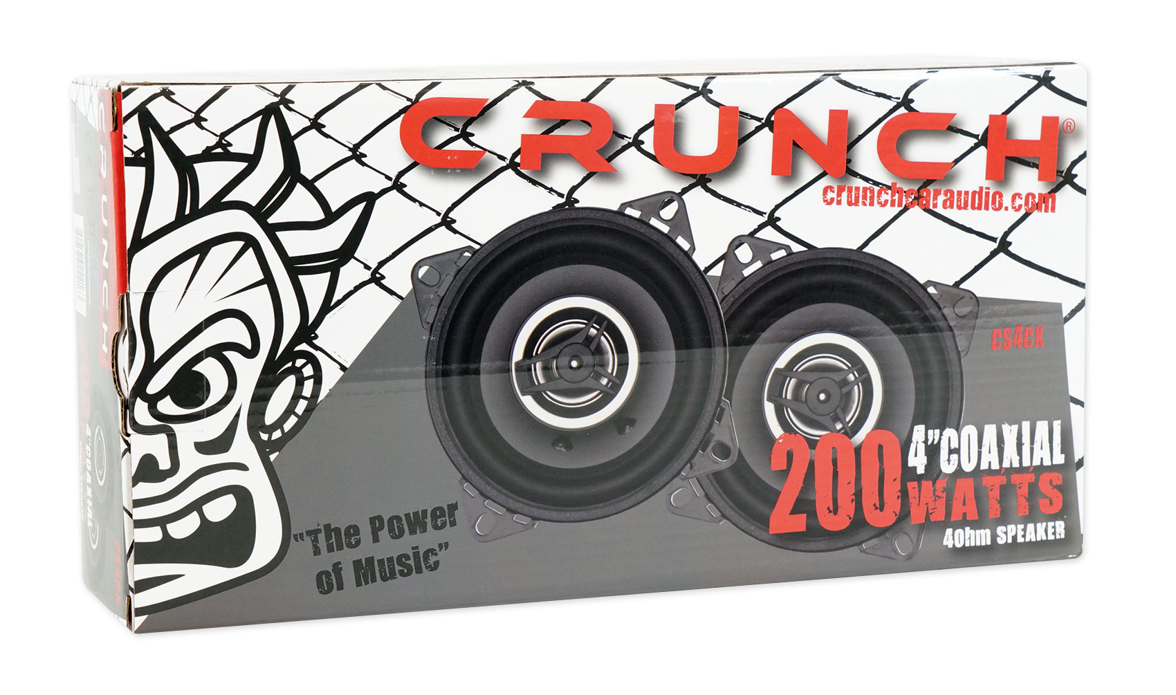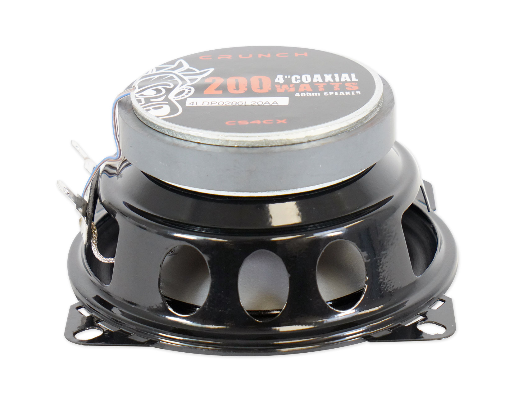 Crunch 4 Inch 2 way 200 watt speaker utilizing Neo Mylar Soft Dome Tweeters and Silver Alpha-Cellulose Poly Cones.
