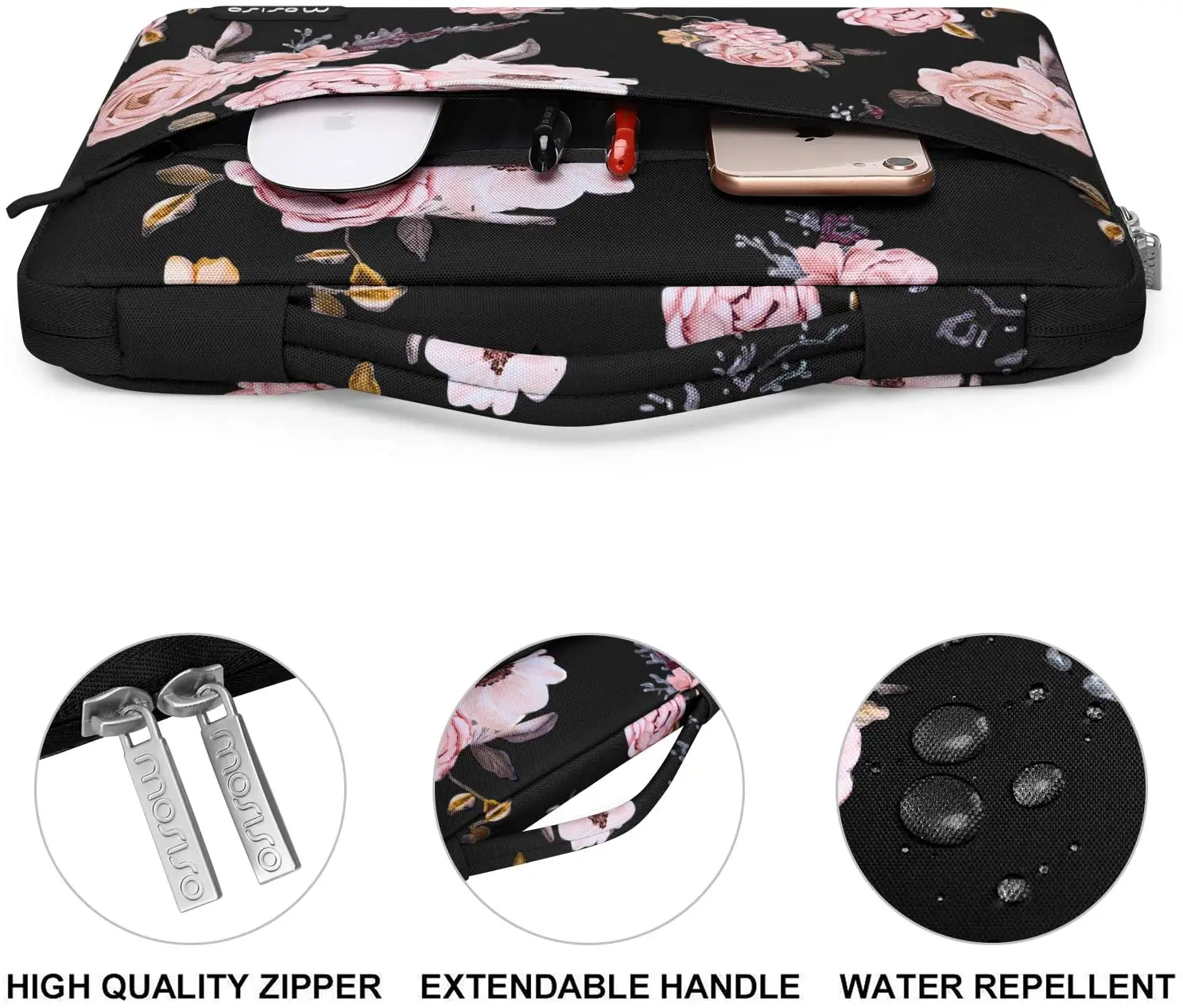 The 360 degree protective shockproof laptop sleeve with handle carrying bag is made of water repellent watercolor marble polyester material, protect your laptop against accidental spills. Slim and lightweight, does not bulk your device up and can easily slide into your briefcase, backpack or other bag. Ideal for business, school or travel.