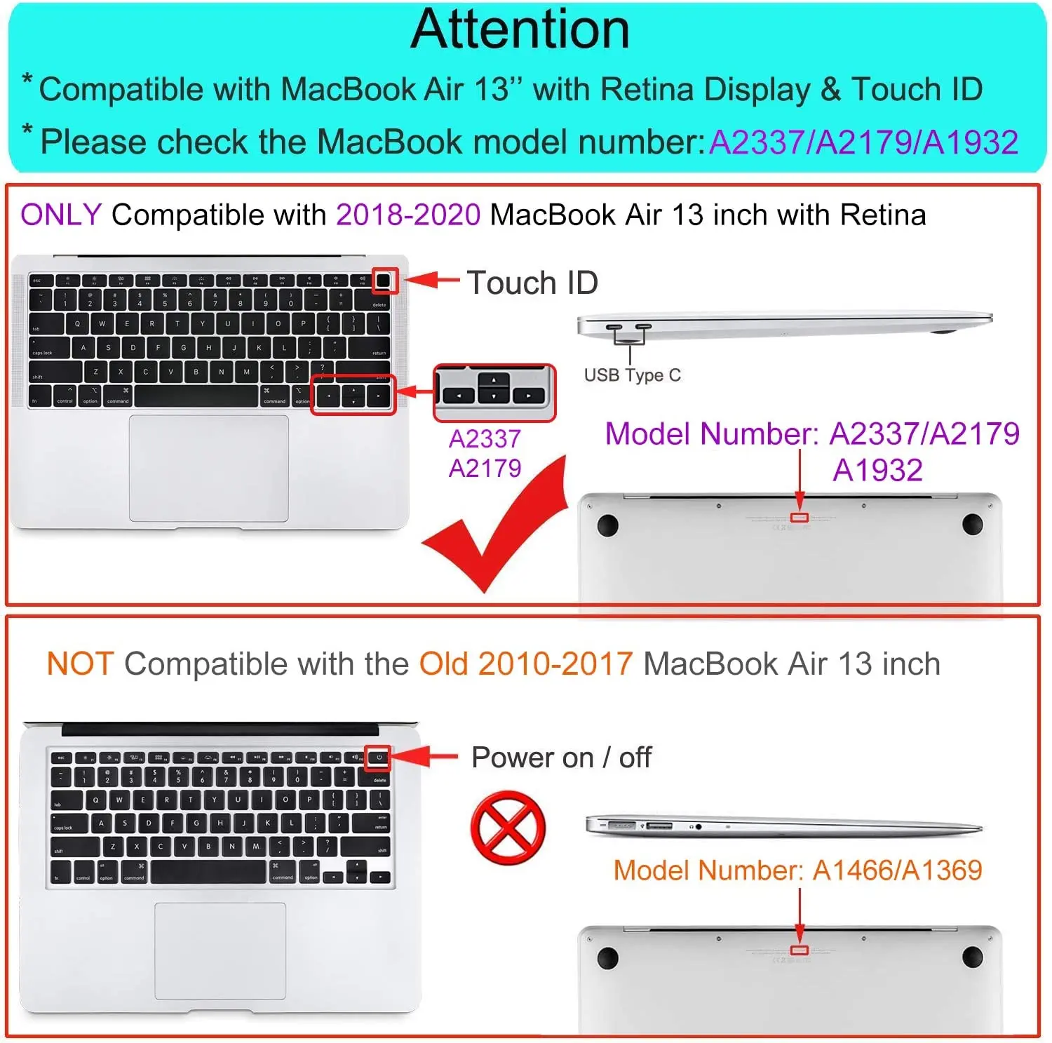 Designed ONLY to be compatible with MacBook Air 13 inch with Retina Display and Touch ID 2020 2019 2018 Release (Models: A2337 M1 A2179, A1932 - MGN63LL/A, MGND3LL/A, MGN93LL/A, MGN73LL/A, MGNE3LL/A, MGNA3LL/A, MWTJ2LL/A, MVH22LL/A, MWTL2LL/A, MWTK2LL/A, MVH52LL/A, MVH42LL/A, MVFH2LL/A, MVFM2LL/A, MVFK2LL/A, MVFJ2LL/A, MVFN2LL/A, MVFL2LL/A, MRE82LL/A, MREE2LL/A, MREA2LL/A, MRE92LL/A, MREF2LL/A, MREC2LL/A). WARNING: This case is NOT compatible with other model laptops.