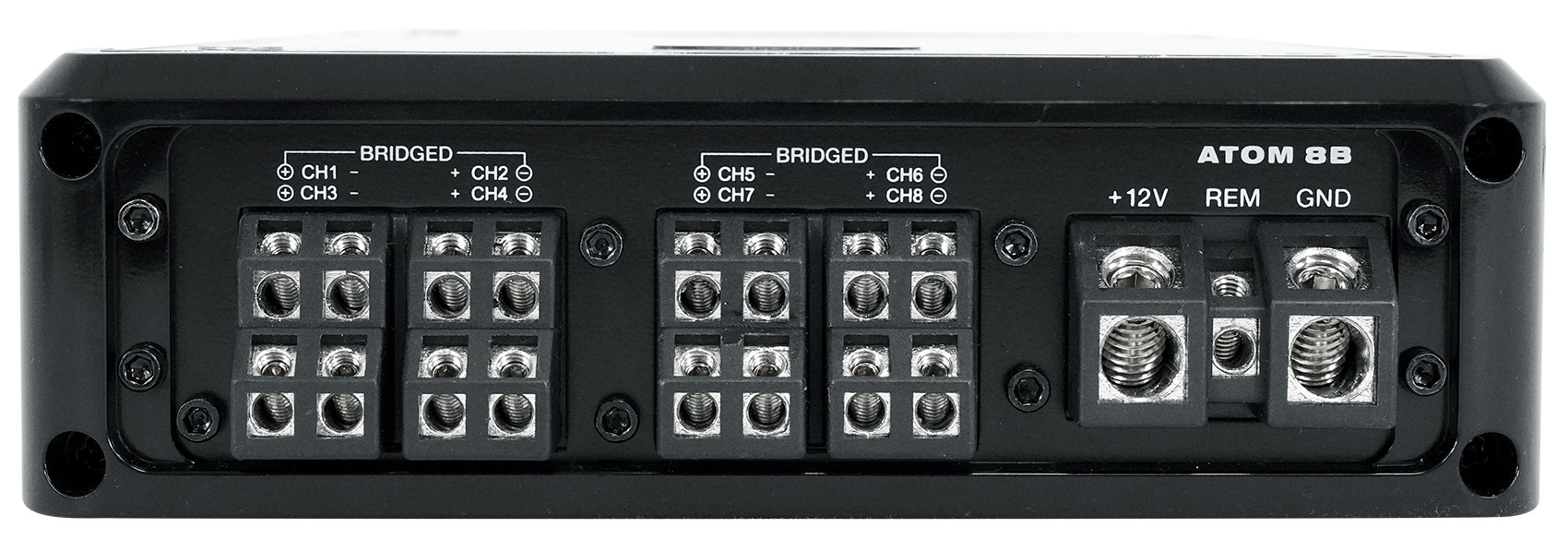 The ATOM 8B is protected by full IC controlled circuitry with mute, delay, and soft start technology to protect your amplifier and speakers from thumping when you turn your vehicle on.