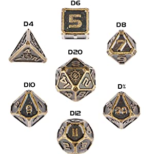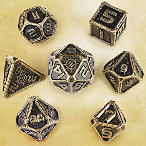 Solid weight & easy to read numbers for every hit & save. The worn-finished bronze metal dice design is stylishly archaic and feels in theme with the characters and weapons in all your fantasy RPG games.