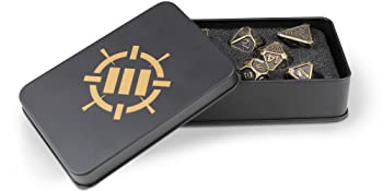 The ENHANCE metal dice set is crafted to look like it has bore the brunt of many battles and they're sure to garner envious looks at your games. A solid weight gives them long-lasting durability for years of roll-play.