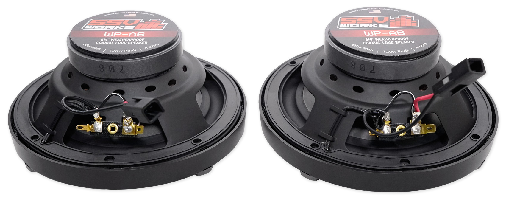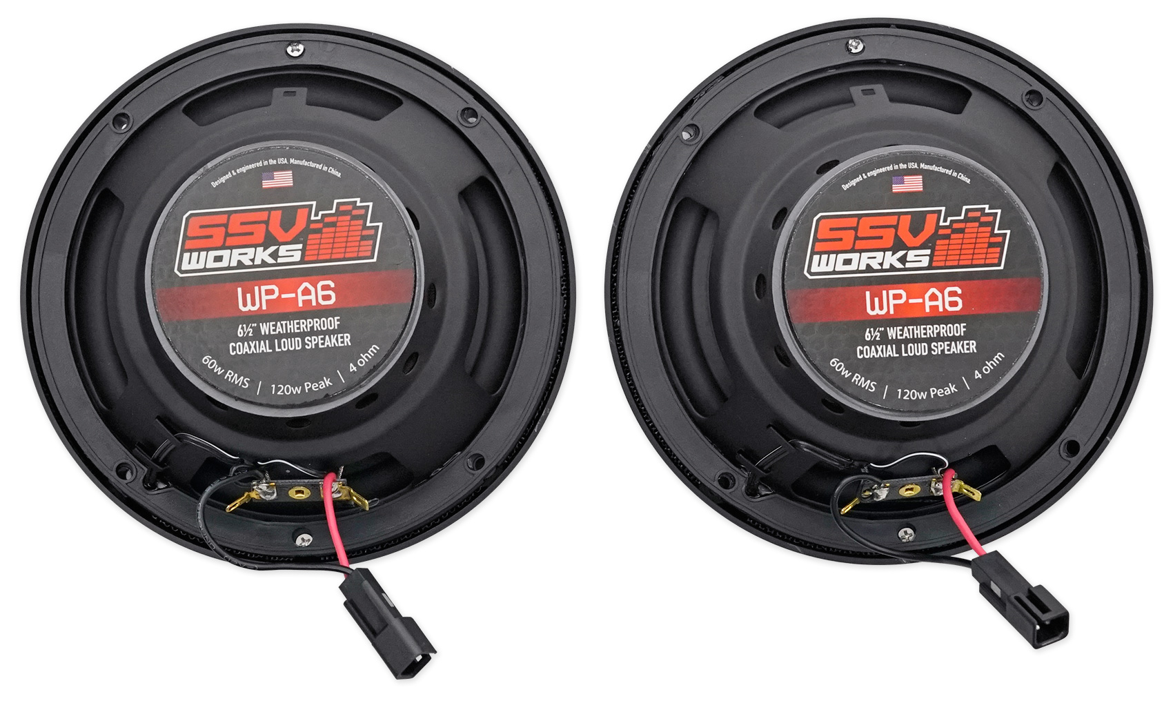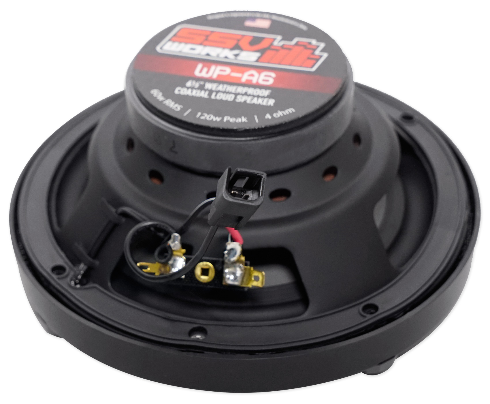 SSV Works’ new 6.5” Marine-Grade weatherproof speakers will transform the sound of your UTV’s stereo. Get louder, cleaner sound even in the dirt and mud. Engineered specifically for Powersports, the new WP-A6 WeatherProof speaker brings audiophile grade components to the outdoors. The 25mm Ti- tweeter creates crisp brilliant highs engineered to be heard outdoors, even in a helmet…over the motor…haulin’ down the trails. The grille mounted tweeter allows for peak cone travel creating maximum output while providing a low profile with optimal weatherproofing.